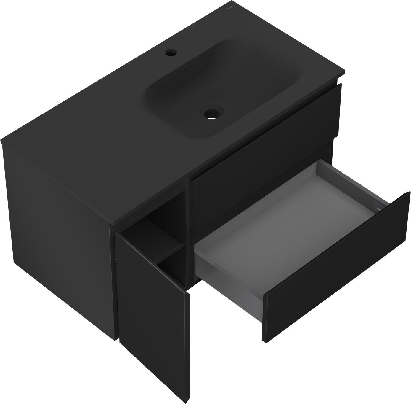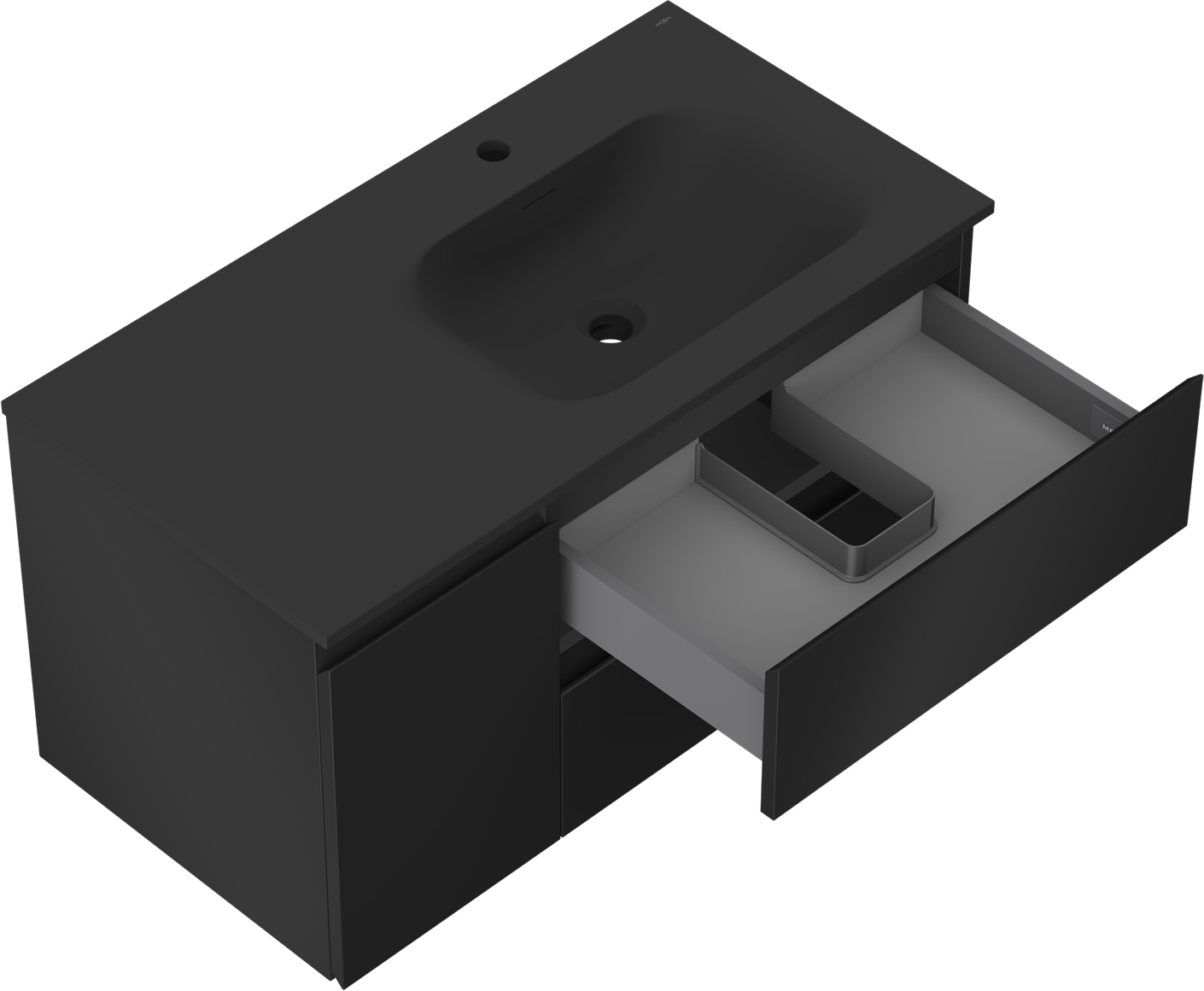 Изрезът в чекмеджето е проектиран по такъв начин, че да побере сифона, който е необходим в мивковите инсталации. Благодарение на това мебелът може да бъде монтиран напълно функционално, без да се налага отказване от пространството в чекмеджето заради инсталацията.