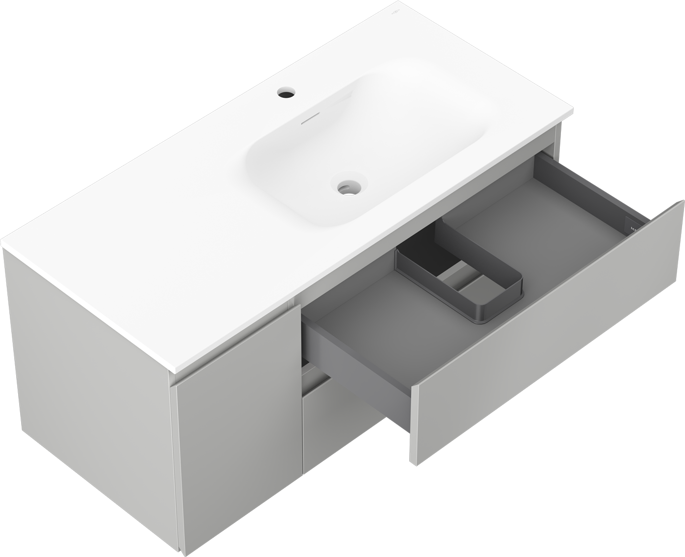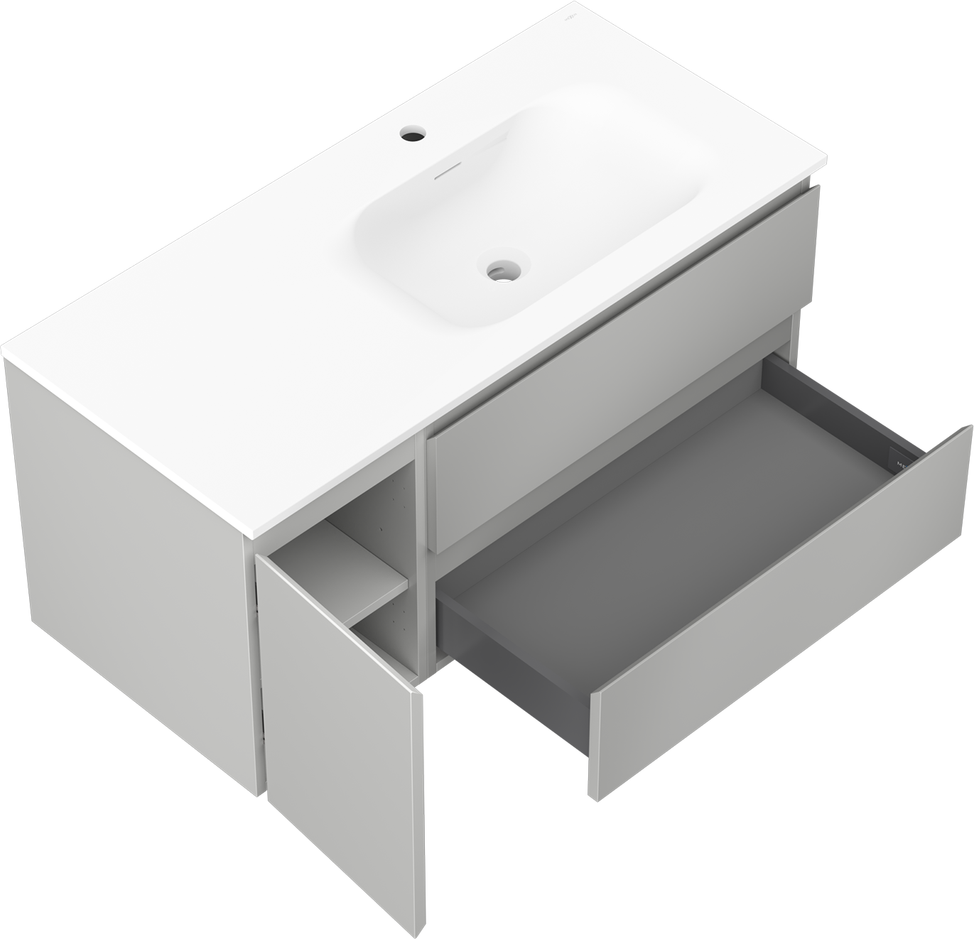 Изрезът в чекмеджето е проектиран по такъв начин, че да побере сифона, който е необходим в мивковите инсталации. Благодарение на това мебелът може да бъде монтиран напълно функционално, без да се налага отказване от пространството в чекмеджето заради инсталацията.