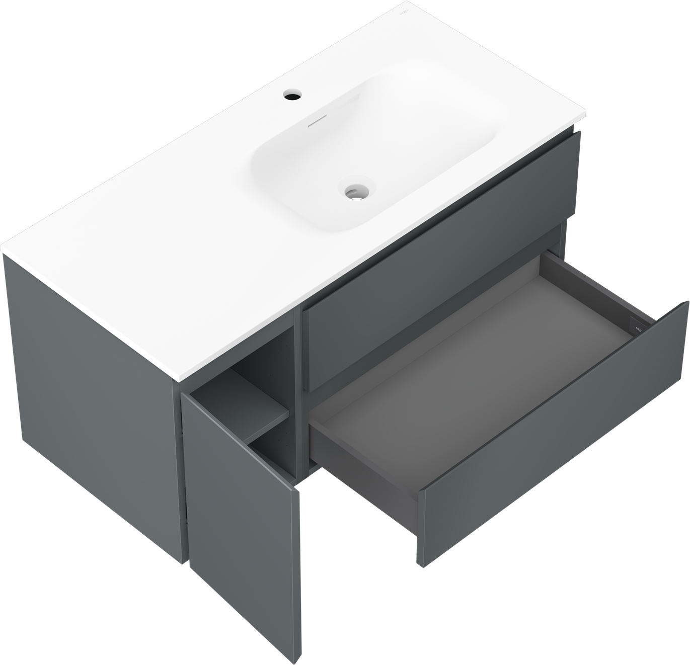 Mexen Orio шкаф за баня 100 см с мивка Vela дясна, 2S, 1D, графит мат/бяло мат