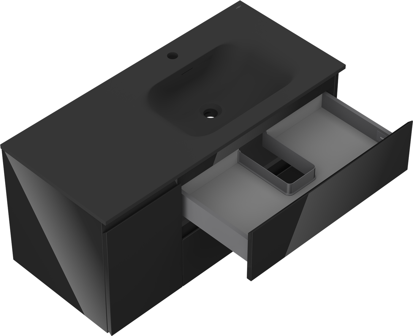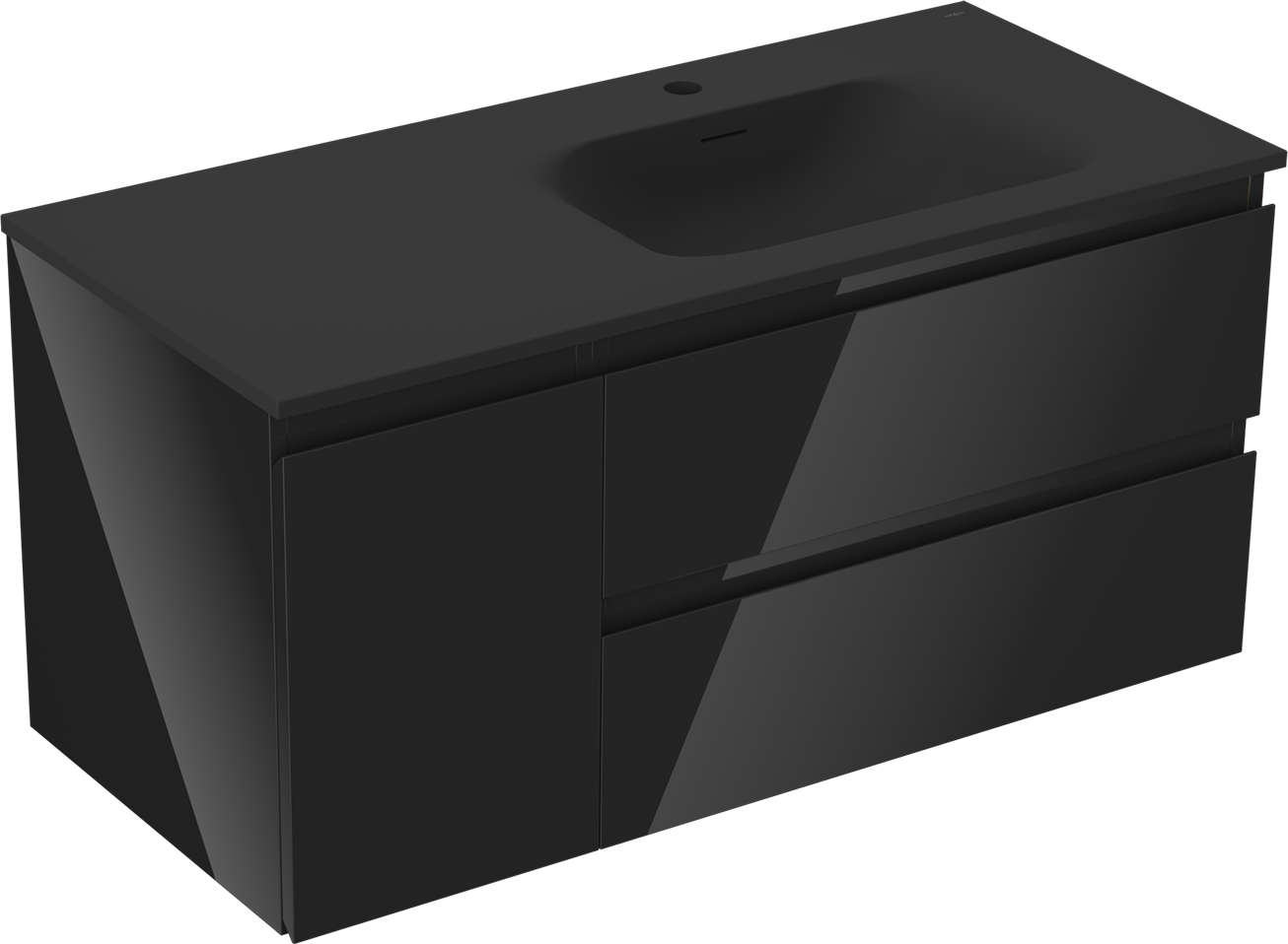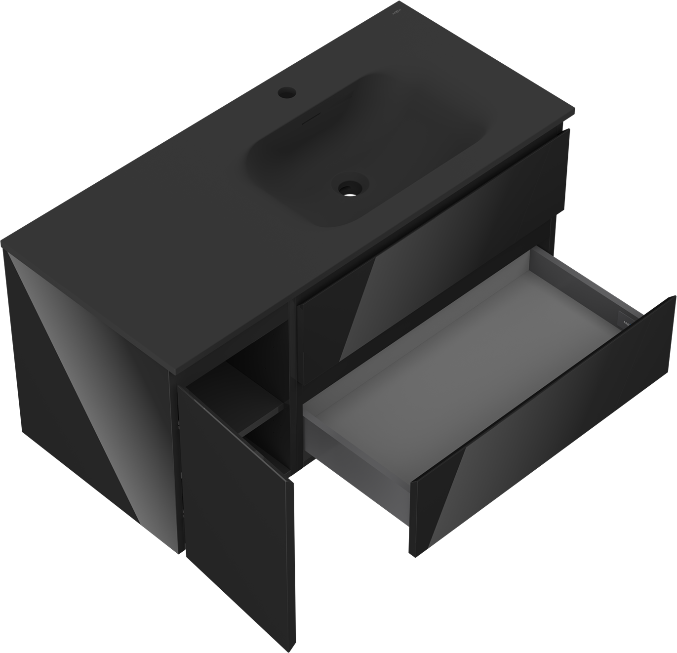 Mexen Orio шкаф за баня 100 см с мивка Vela дясна, 2S, 1D, черен гланц/черен мат