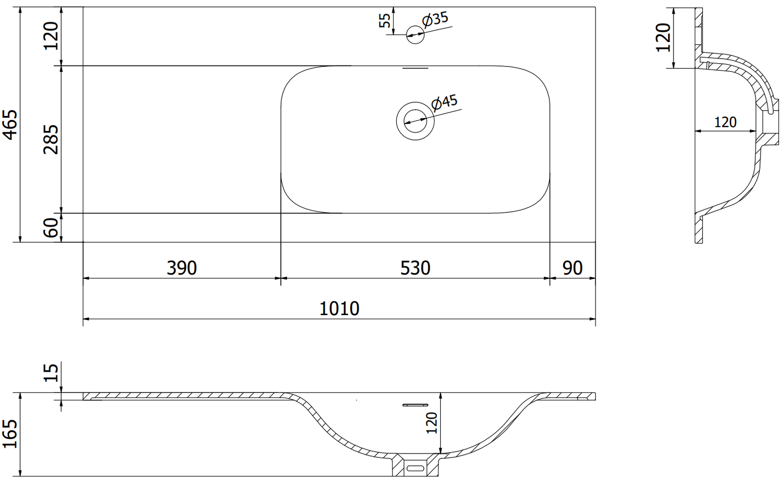 Изрезът в чекмеджето е проектиран по такъв начин, че да побере сифона, който е необходим в мивковите инсталации. Благодарение на това мебелът може да бъде монтиран напълно функционално, без да се налага отказване от пространството в чекмеджето заради инсталацията.