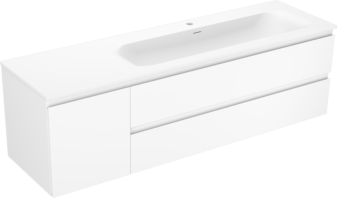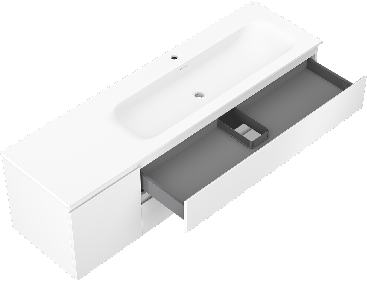 Изрезът в чекмеджето е проектиран по такъв начин, че да побере сифона, който е необходим в мивковите инсталации. Благодарение на това мебелът може да бъде монтиран напълно функционално, без да се налага отказване от пространството в чекмеджето заради инсталацията.