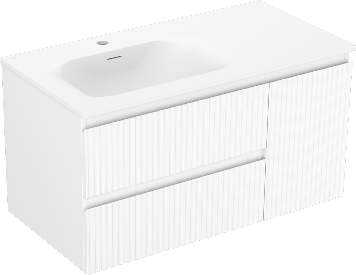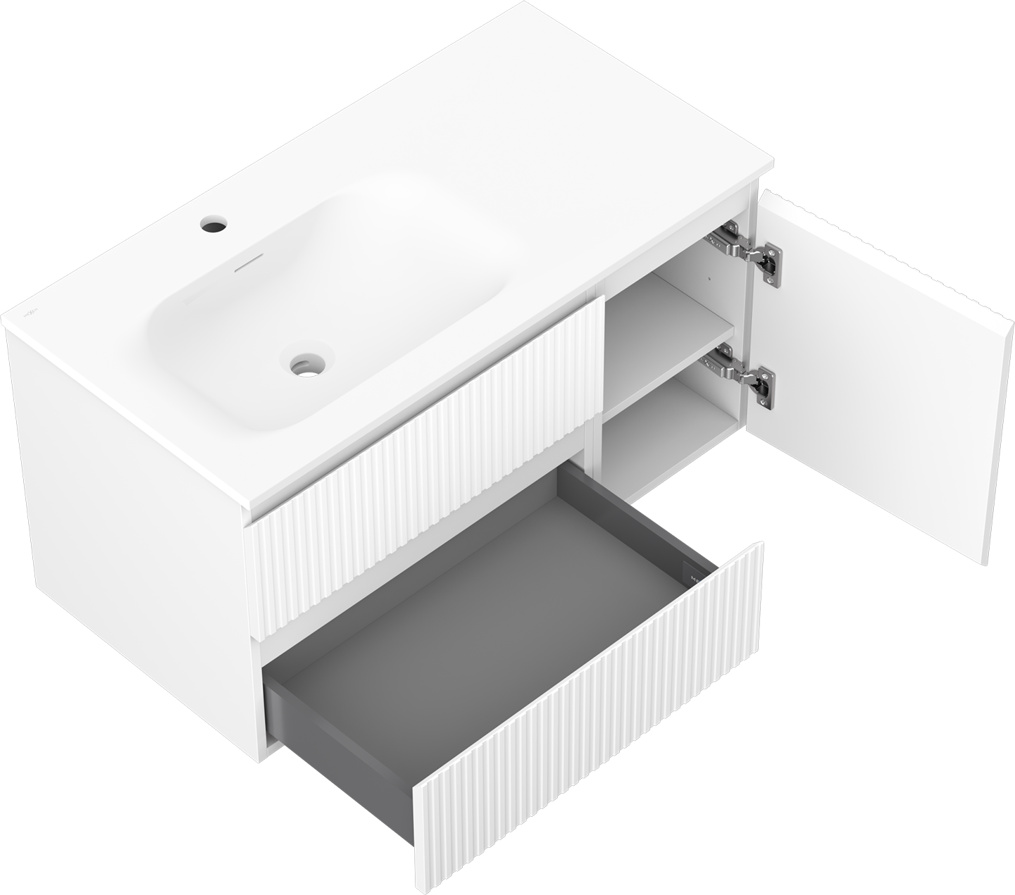 Изрезът в чекмеджето е проектиран по такъв начин, че да побере сифона, който е необходим в мивковите инсталации. Благодарение на това мебелът може да бъде монтиран напълно функционално, без да се налага отказване от пространството в чекмеджето заради инсталацията.