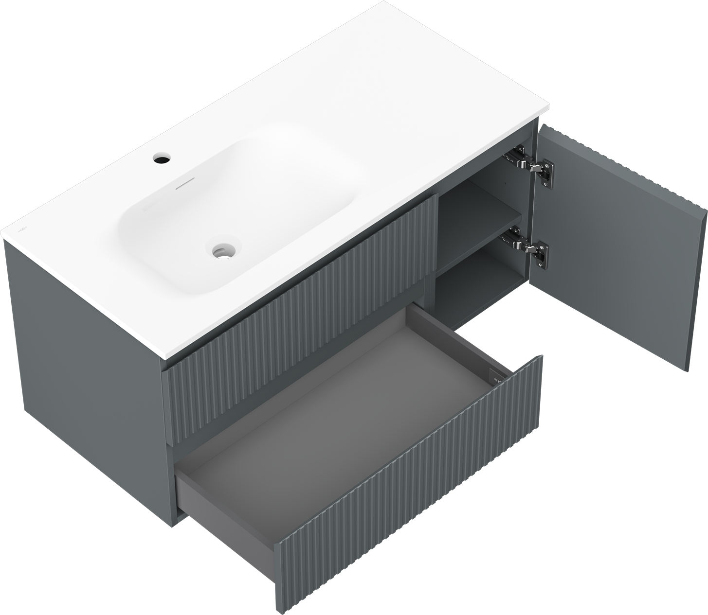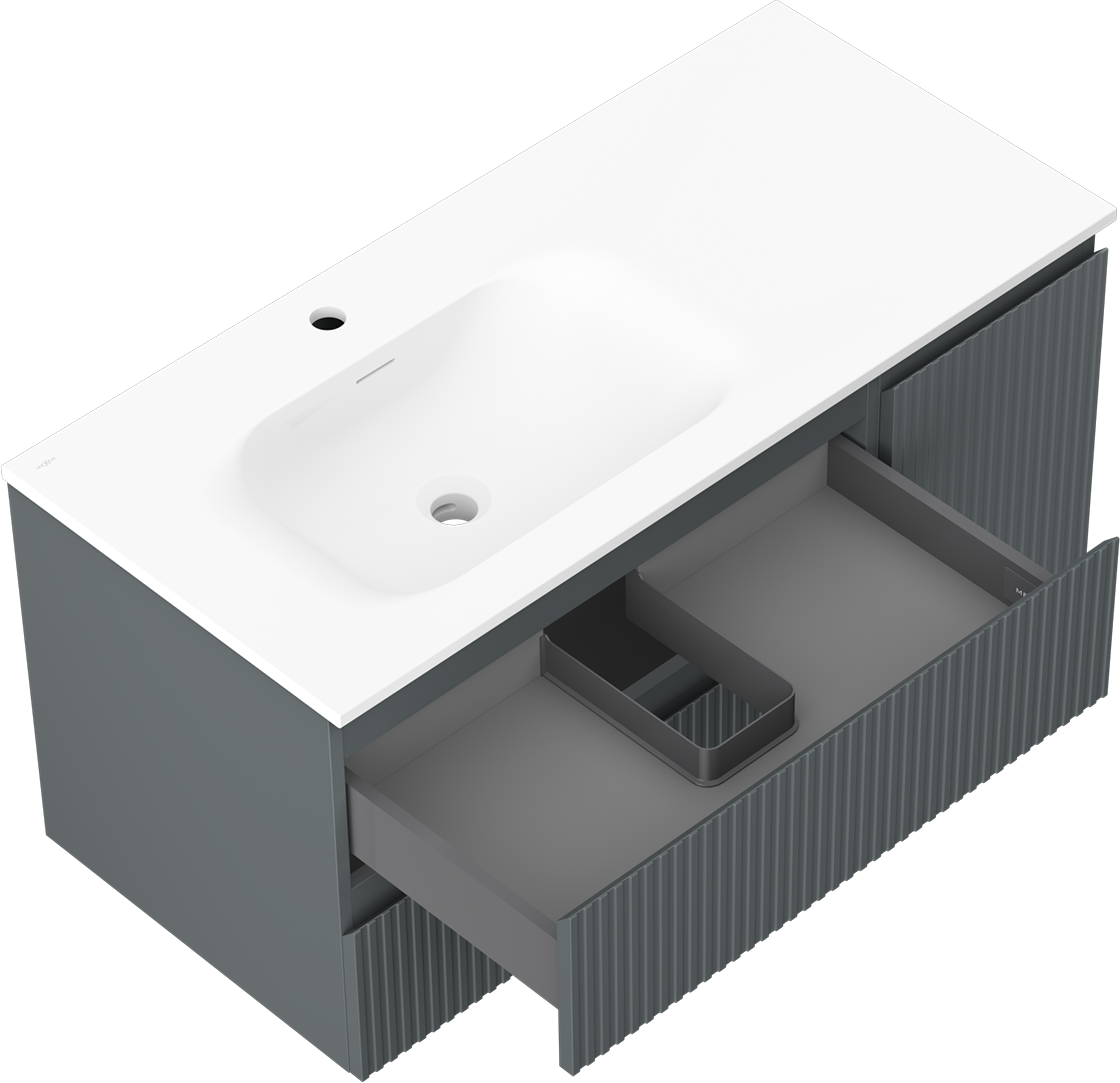 Изрезът в чекмеджето е проектиран по такъв начин, че да побере сифона, който е необходим в мивковите инсталации. Благодарение на това мебелът може да бъде монтиран напълно функционално, без да се налага отказване от пространството в чекмеджето заради инсталацията.