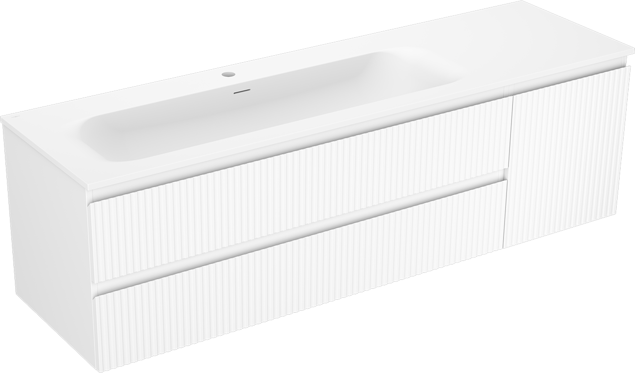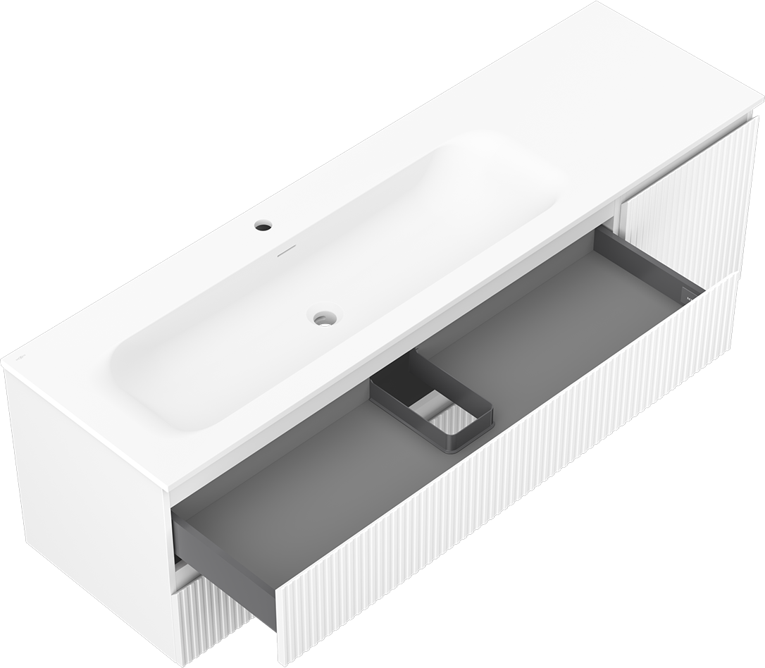 Изрезът в чекмеджето е проектиран по такъв начин, че да побере сифона, който е необходим в мивковите инсталации. Благодарение на това мебелът може да бъде монтиран напълно функционално, без да се налага отказване от пространството в чекмеджето заради инсталацията.