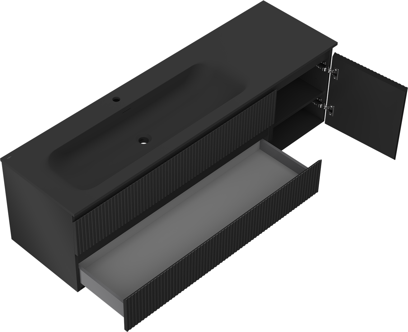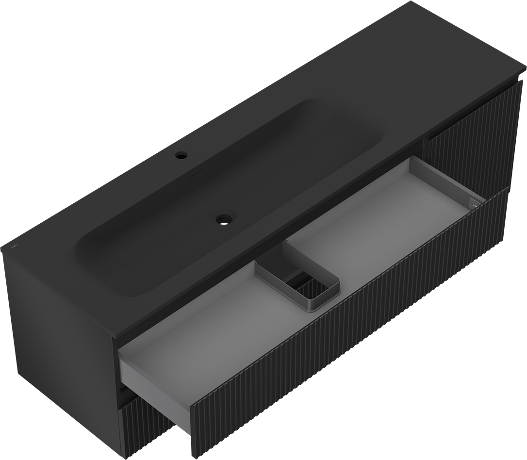 Изрезът в чекмеджето е проектиран по такъв начин, че да побере сифона, който е необходим в мивковите инсталации. Благодарение на това мебелът може да бъде монтиран напълно функционално, без да се налага отказване от пространството в чекмеджето заради инсталацията.