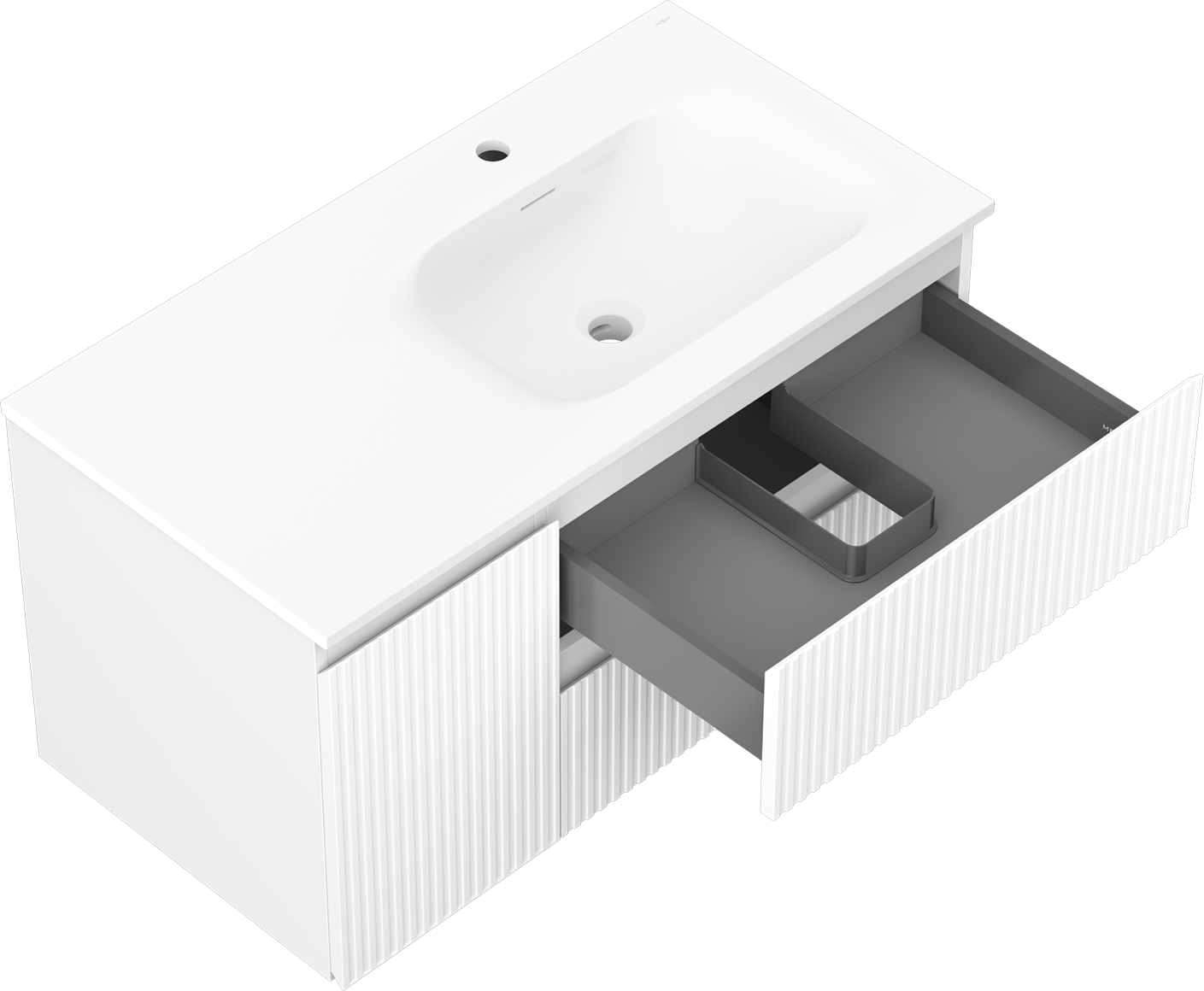 Изрезът в чекмеджето е проектиран по такъв начин, че да побере сифона, който е необходим в мивковите инсталации. Благодарение на това мебелът може да бъде монтиран напълно функционално, без да се налага отказване от пространството в чекмеджето заради инсталацията.