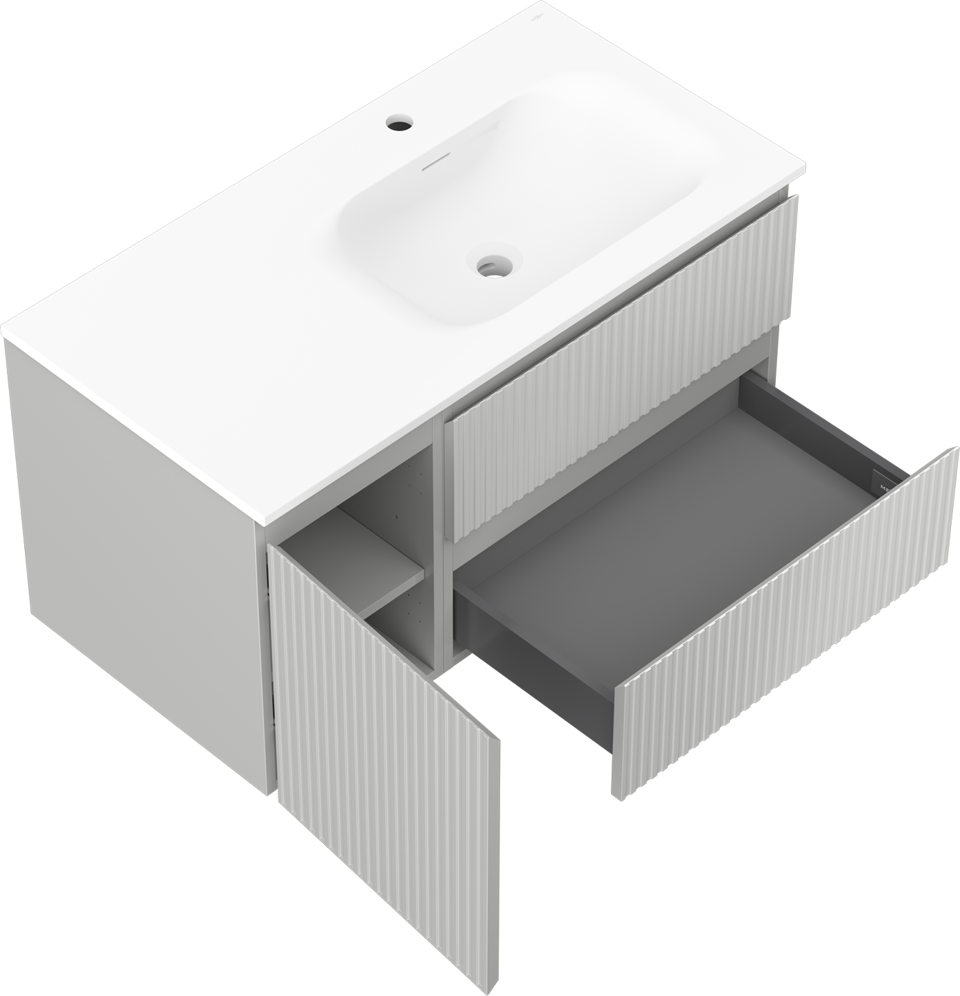 Изрезът в чекмеджето е проектиран по такъв начин, че да побере сифона, който е необходим в мивковите инсталации. Благодарение на това мебелът може да бъде монтиран напълно функционално, без да се налага отказване от пространството в чекмеджето заради инсталацията.