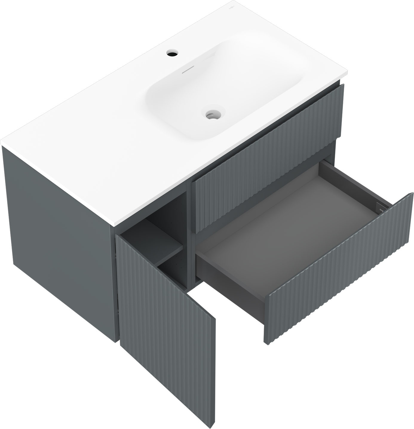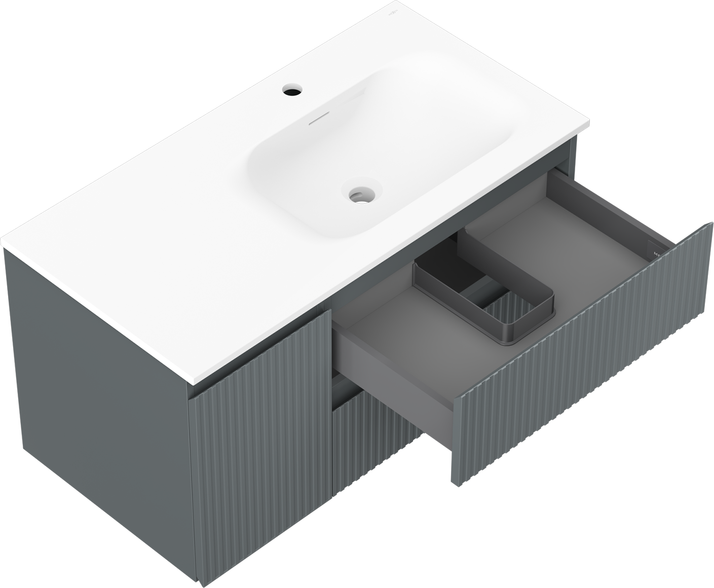 Изрезът в чекмеджето е проектиран по такъв начин, че да побере сифона, който е необходим в мивковите инсталации. Благодарение на това мебелът може да бъде монтиран напълно функционално, без да се налага отказване от пространството в чекмеджето заради инсталацията.