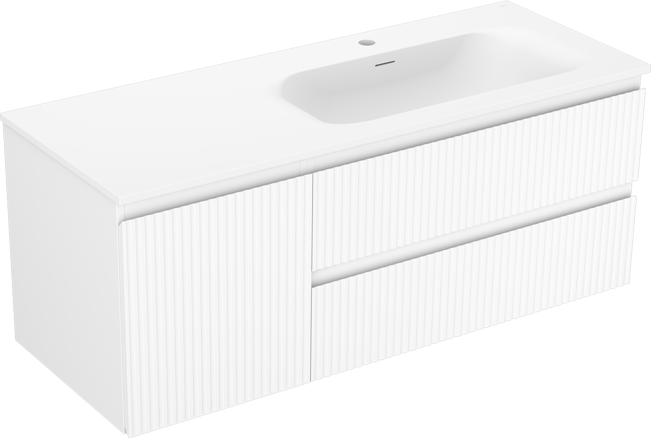 Изрезът в чекмеджето е проектиран по такъв начин, че да побере сифона, който е необходим в мивковите инсталации. Благодарение на това мебелът може да бъде монтиран напълно функционално, без да се налага отказване от пространството в чекмеджето заради инсталацията.
