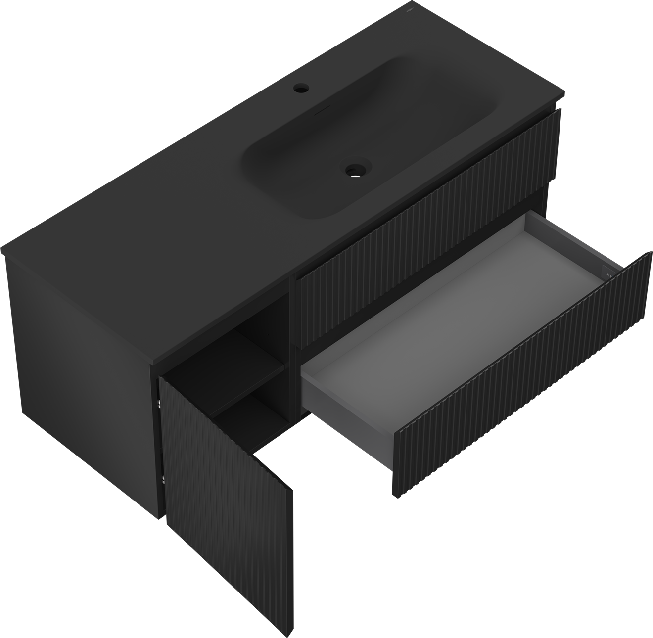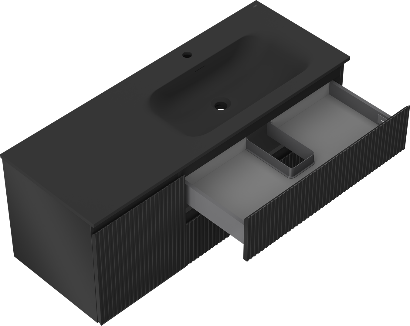 Изрезът в чекмеджето е проектиран по такъв начин, че да побере сифона, който е необходим в мивковите инсталации. Благодарение на това мебелът може да бъде монтиран напълно функционално, без да се налага отказване от пространството в чекмеджето заради инсталацията.