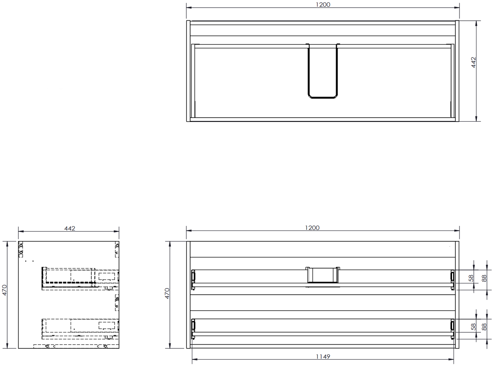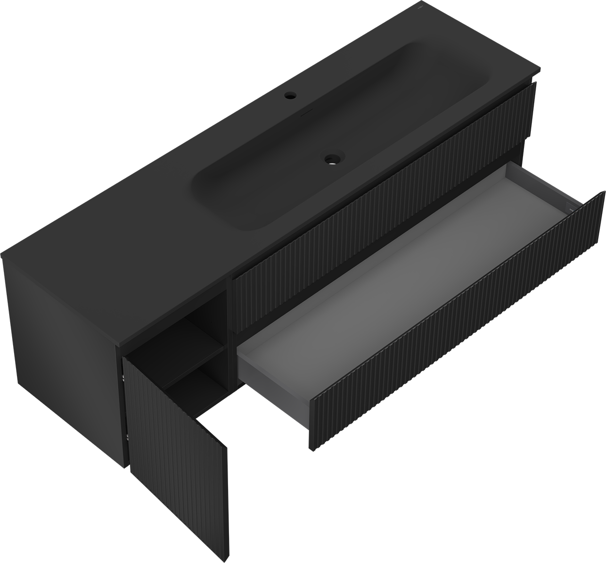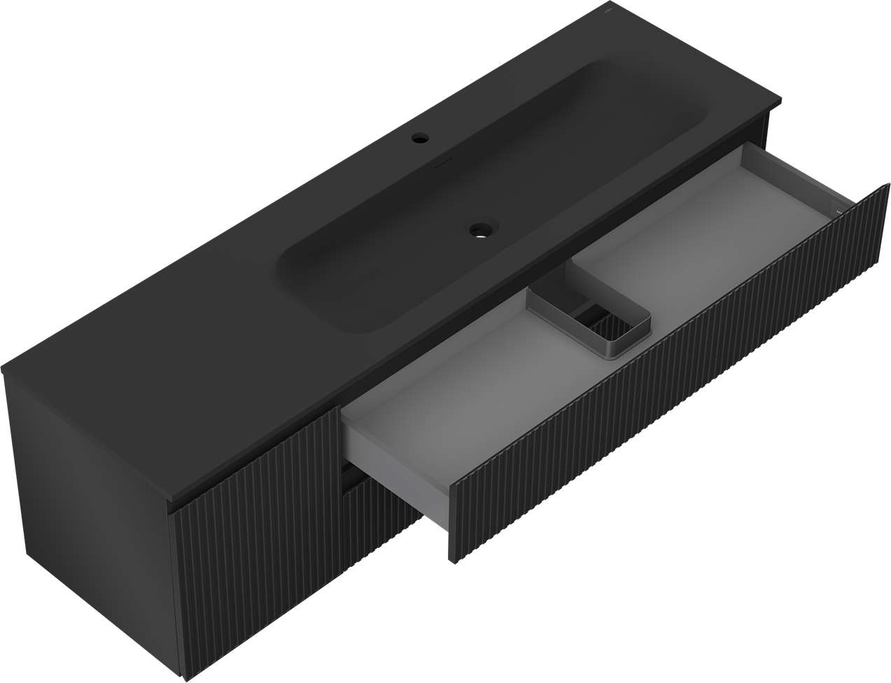 Изрезът в чекмеджето е проектиран по такъв начин, че да побере сифона, който е необходим в мивковите инсталации. Благодарение на това мебелът може да бъде монтиран напълно функционално, без да се налага отказване от пространството в чекмеджето заради инсталацията.