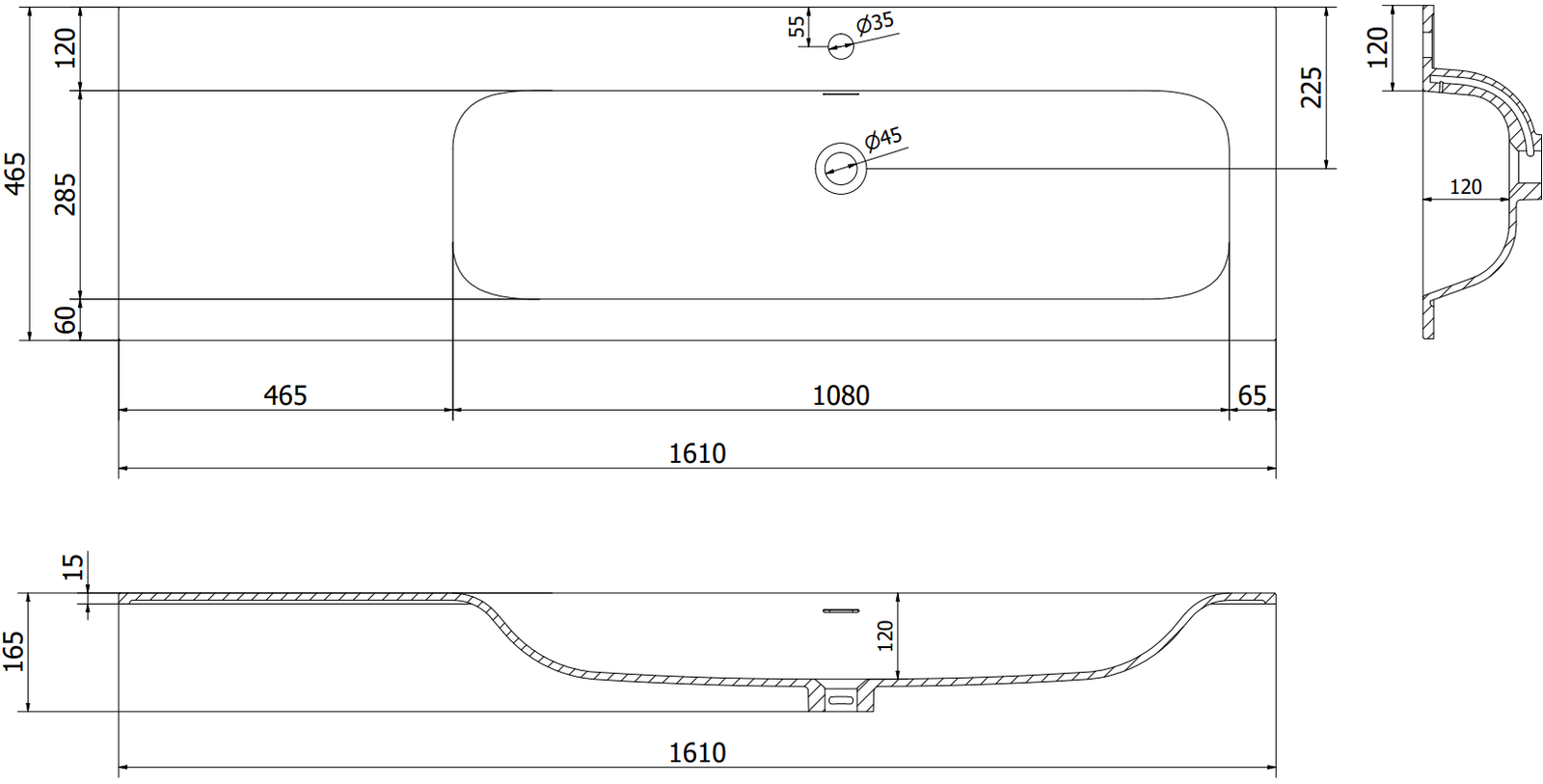 Преливният отвор се нарича "отвор за безопасност". Чрез него излиза излишната вода, което предотвратява изтичането на вода извън ръба на продукта, когато долният отток е затворен. Това е много безопасно и практично решение.