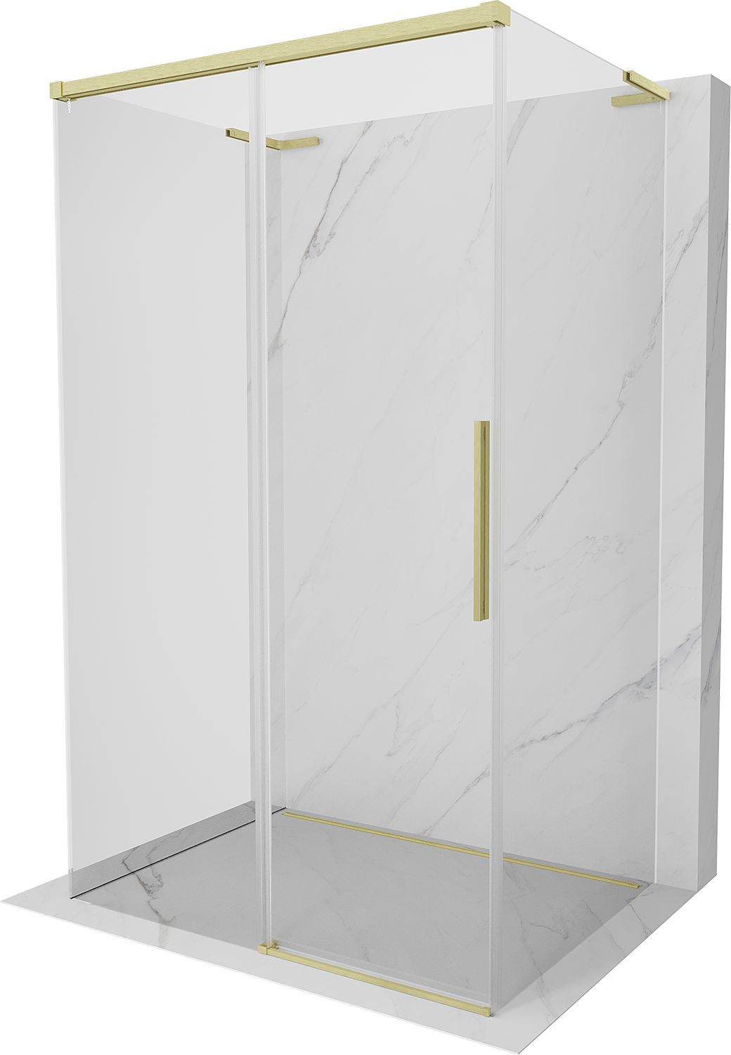 Mexen Rox-3S L тристранна плъзгаща се душ кабина 130 x 95 см, прозрачна, златна четканая - 8C2L-130-095-55-00-3S