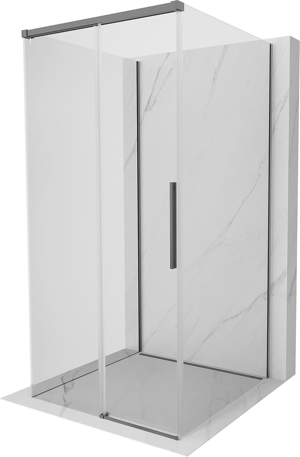 Mexen Rox-3S триизмерна плъзгаща се душ кабина 90 x 90 см, прозрачна, оръжеен метал - 8C2-090-090-95-00-3S