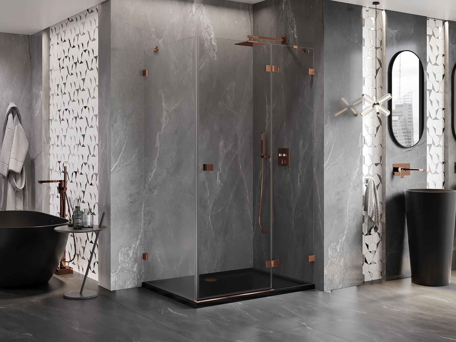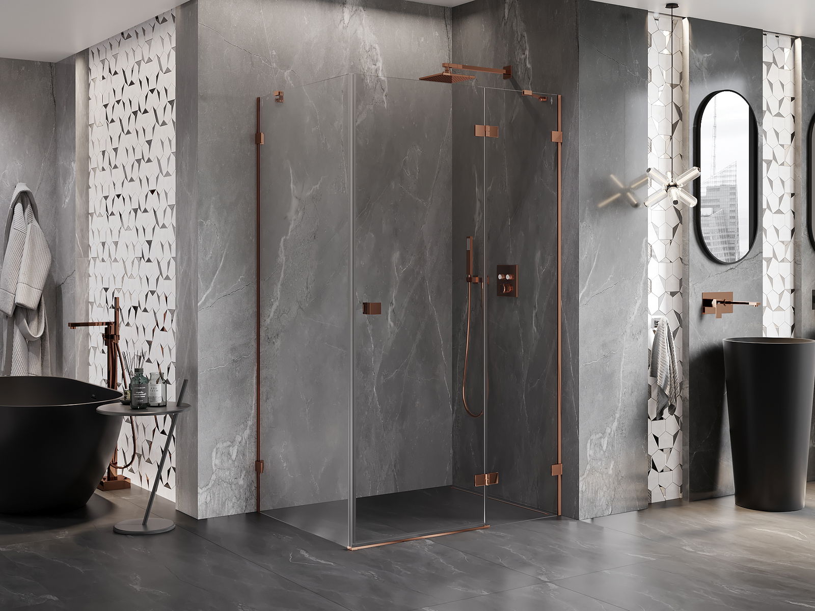 Скобите и пантите са изработени от много издръжлив месинг и създават плосък стъклен панел. Това е отличен избор, който съчетава елегантност, издръжливост и модерен дизайн. Благодарение на такива решения, душът придобива естетика и същевременно улеснява поддържането на чистота.