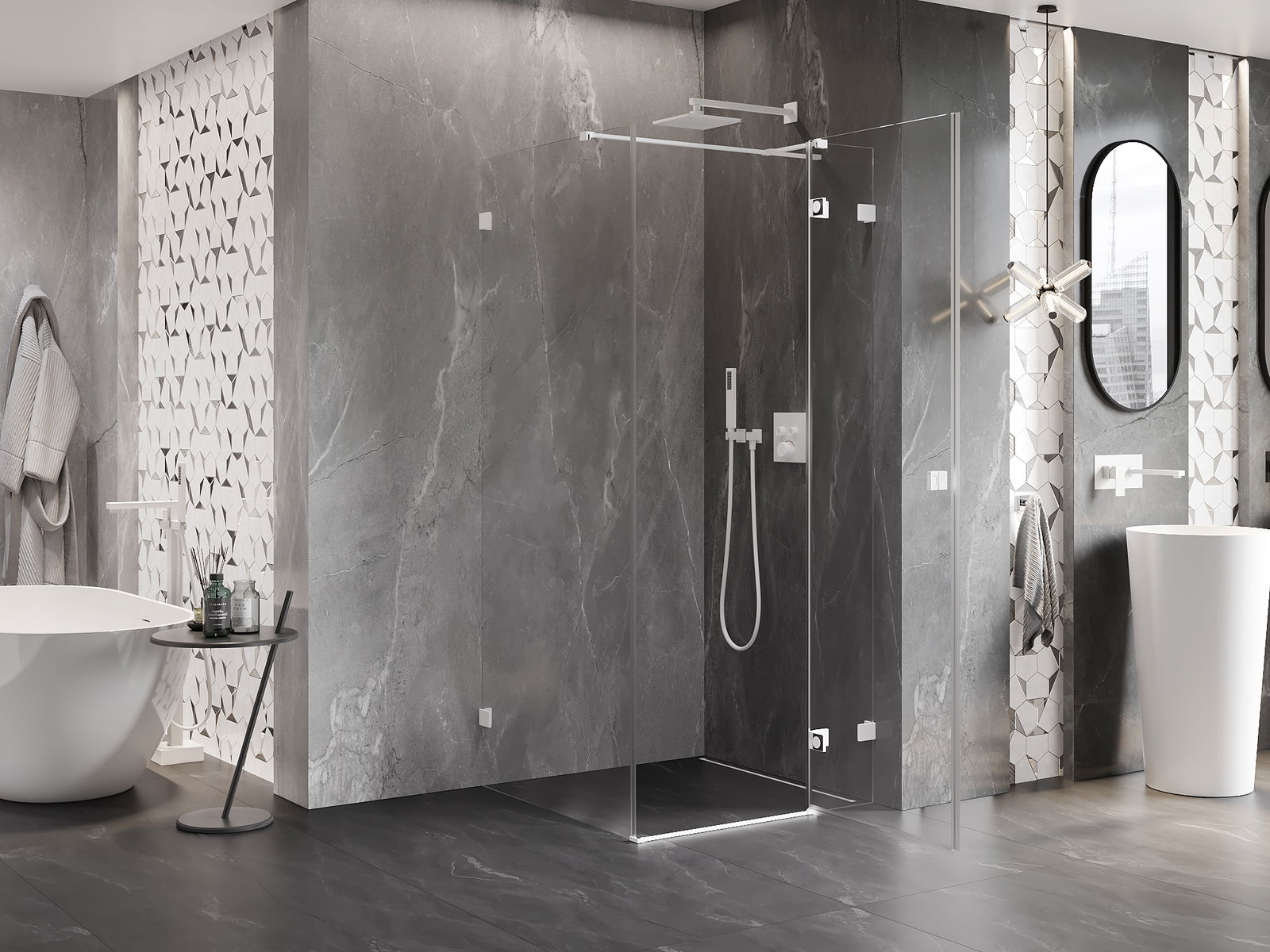 Скобите и пантите са изработени от много издръжлив месинг и създават плосък стъклен панел. Това е отличен избор, който съчетава елегантност, издръжливост и модерен дизайн. Благодарение на такива решения, душът придобива естетика и същевременно улеснява поддържането на чистота.