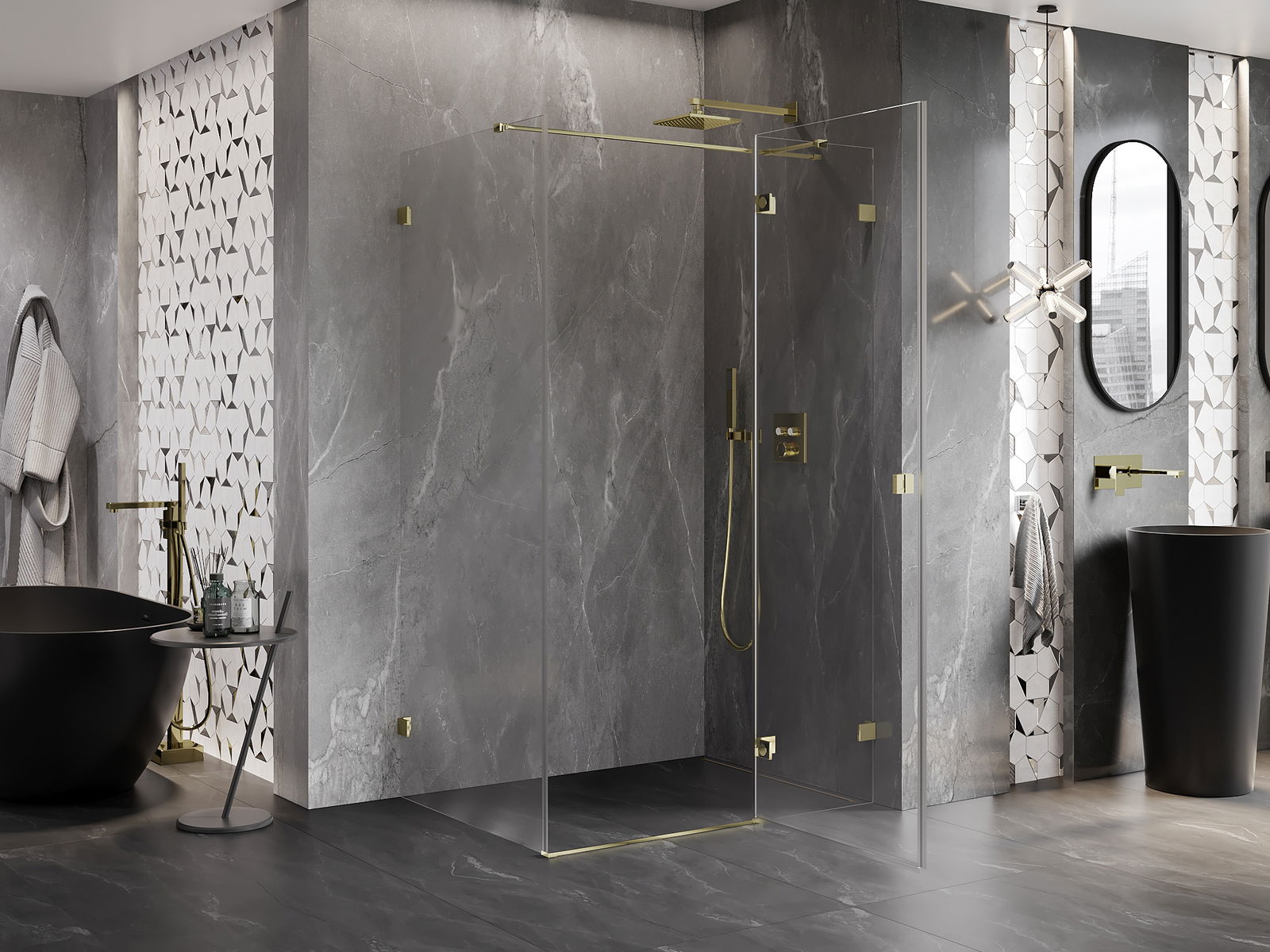 Скобите и пантите са изработени от много издръжлив месинг и създават плосък стъклен панел. Това е отличен избор, който съчетава елегантност, издръжливост и модерен дизайн. Благодарение на такива решения, душът придобива естетика и същевременно улеснява поддържането на чистота.