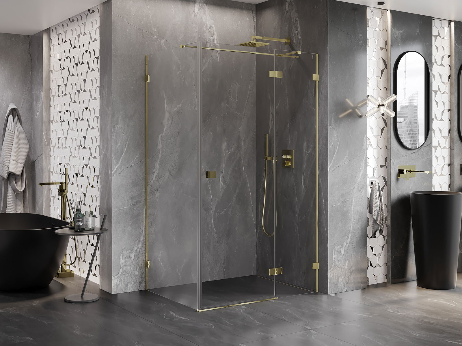 Скобите и пантите са изработени от много издръжлив месинг и създават плосък стъклен панел. Това е отличен избор, който съчетава елегантност, издръжливост и модерен дизайн. Благодарение на такива решения, душът придобива естетика и същевременно улеснява поддържането на чистота.