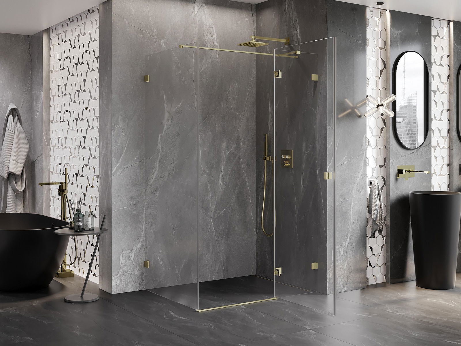 Скобите и пантите са изработени от много издръжлив месинг и създават плосък стъклен панел. Това е отличен избор, който съчетава елегантност, издръжливост и модерен дизайн. Благодарение на такива решения, душът придобива естетика и същевременно улеснява поддържането на чистота.