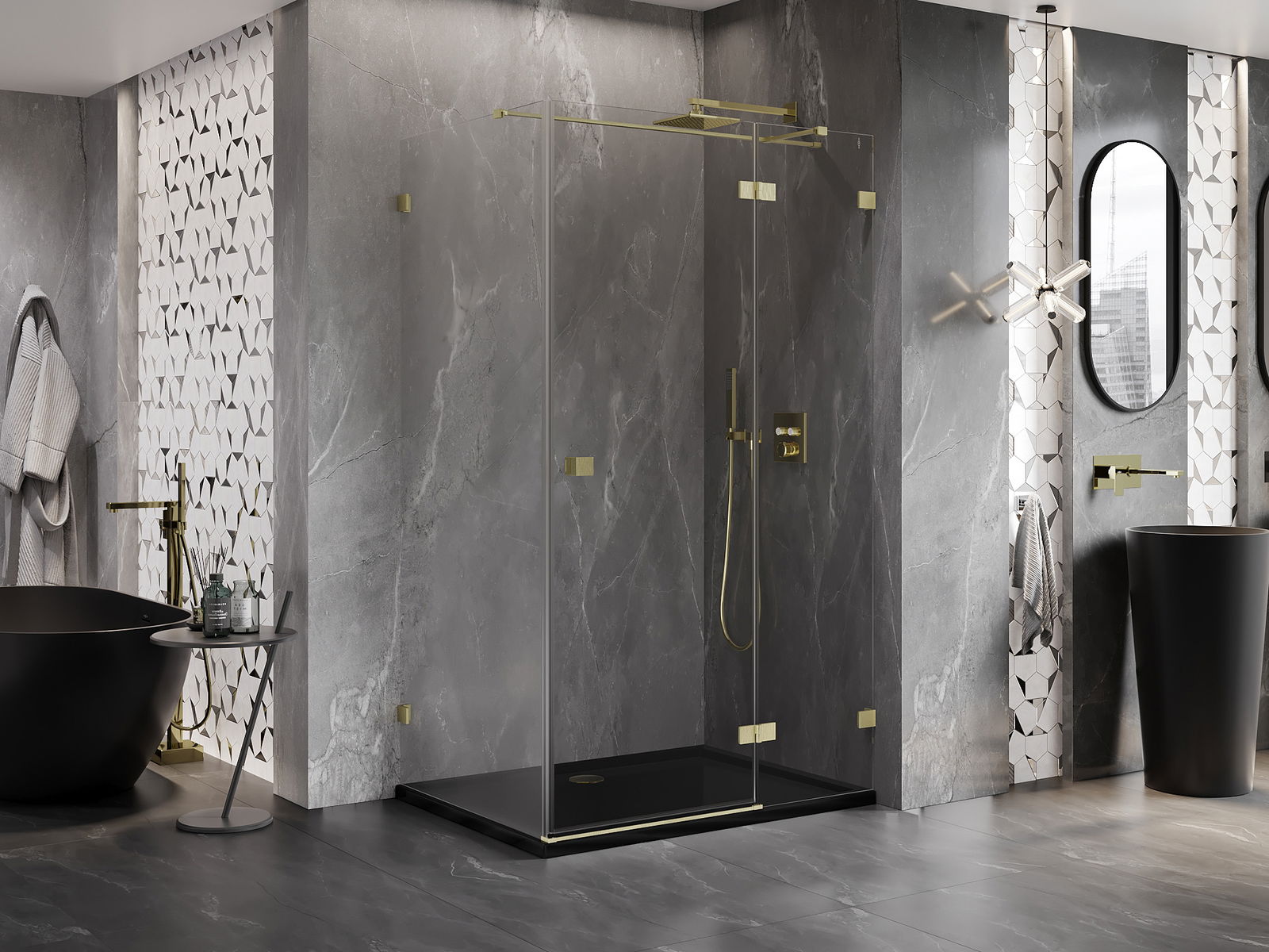 Mexen Lunar T душ кабина с отваряща се врата дясна 80 x 110 см, прозрачна, злато четкано - 834T-080-110-55-00-P