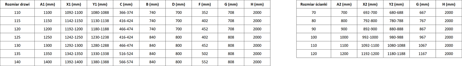 Размер: 70x70 см (лява врата 70 см, стена 70 см)
