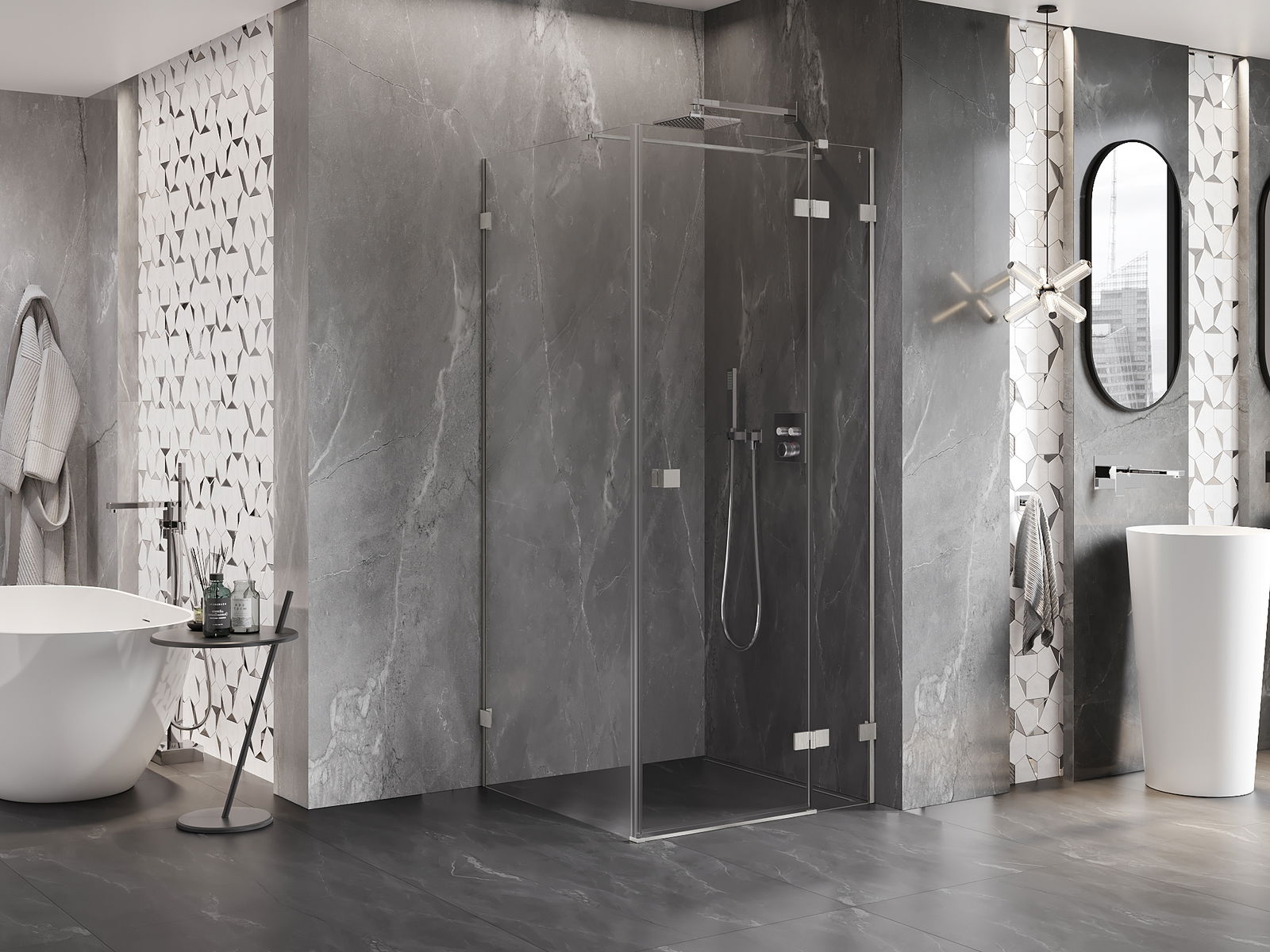 Скобите и пантите са изработени от много издръжлив месинг и създават плосък стъклен панел. Това е отличен избор, който съчетава елегантност, издръжливост и модерен дизайн. Благодарение на такива решения, душът придобива естетика и същевременно улеснява поддържането на чистота.