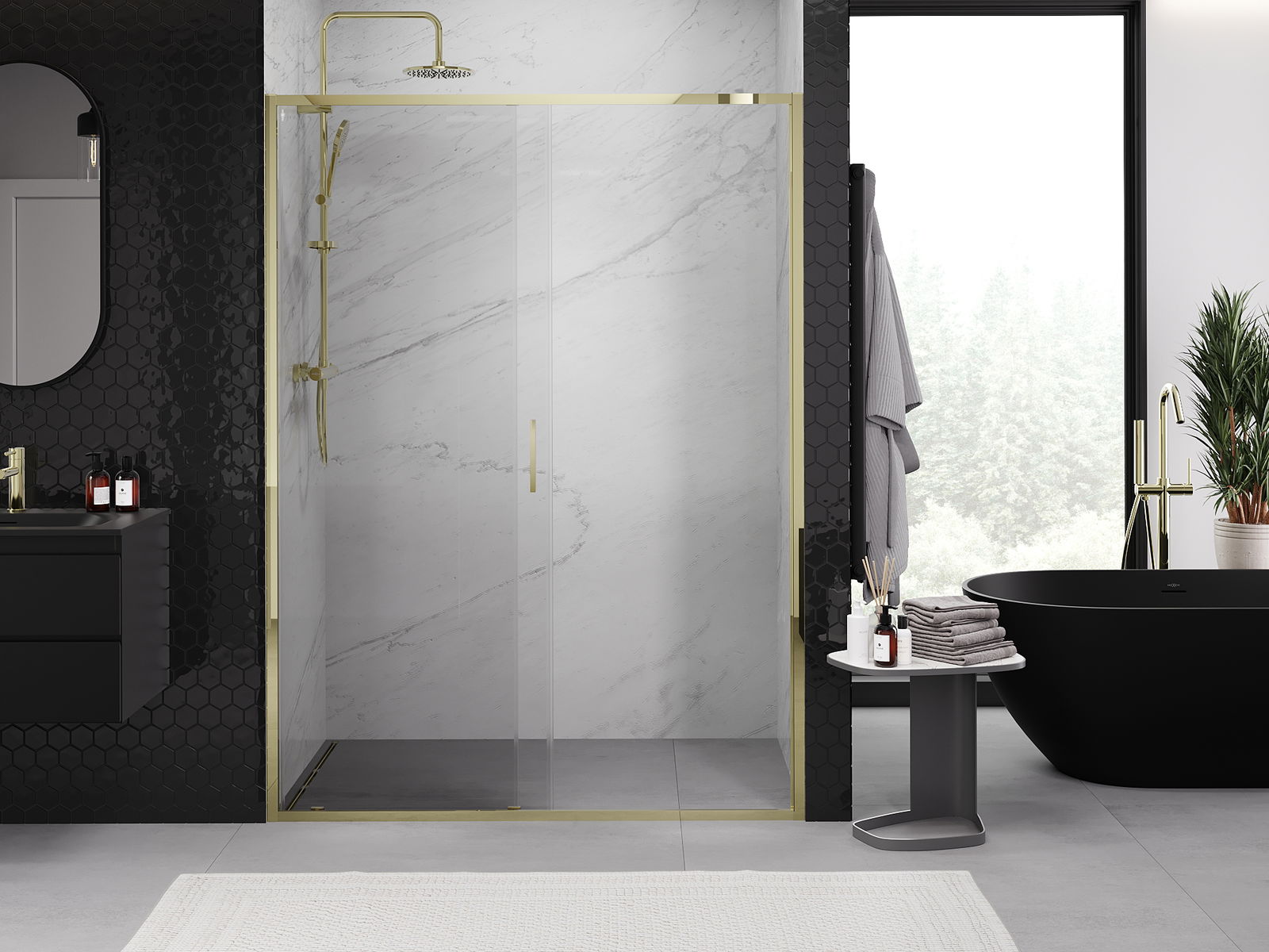 Плъзгащите се врати се движат по специални водачи и не изискват допълнително пространство, за да се отворят, поради което са подходящи за по-малки бани. Благодарение на двойните ролки с метално тяло, движението им е гладко.