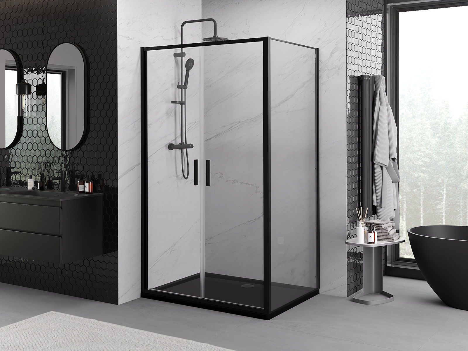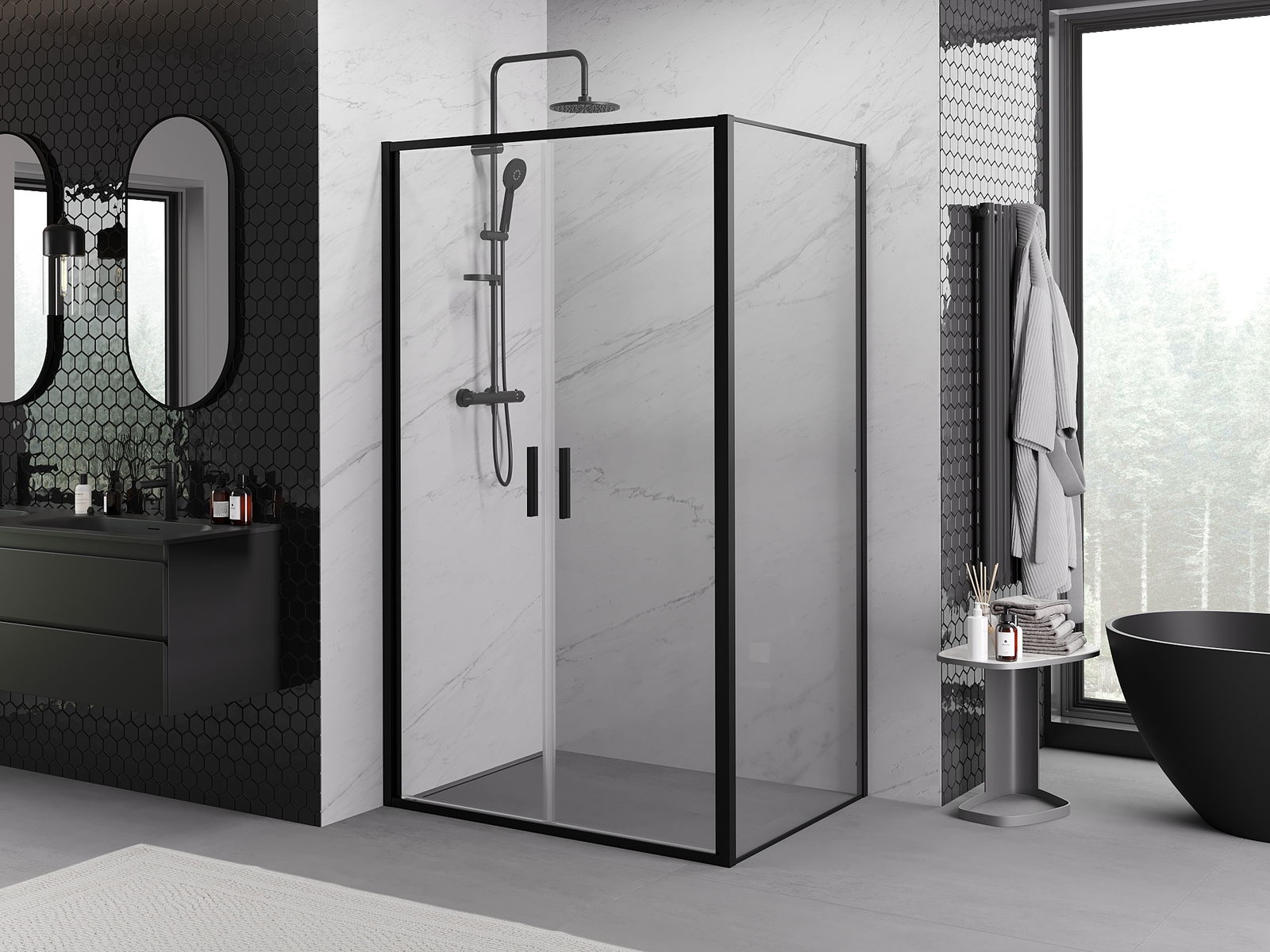 Mexen Rio квадратна душ кабина 90 x 90 см, прозрачна, черна - 860-090-090-70-00