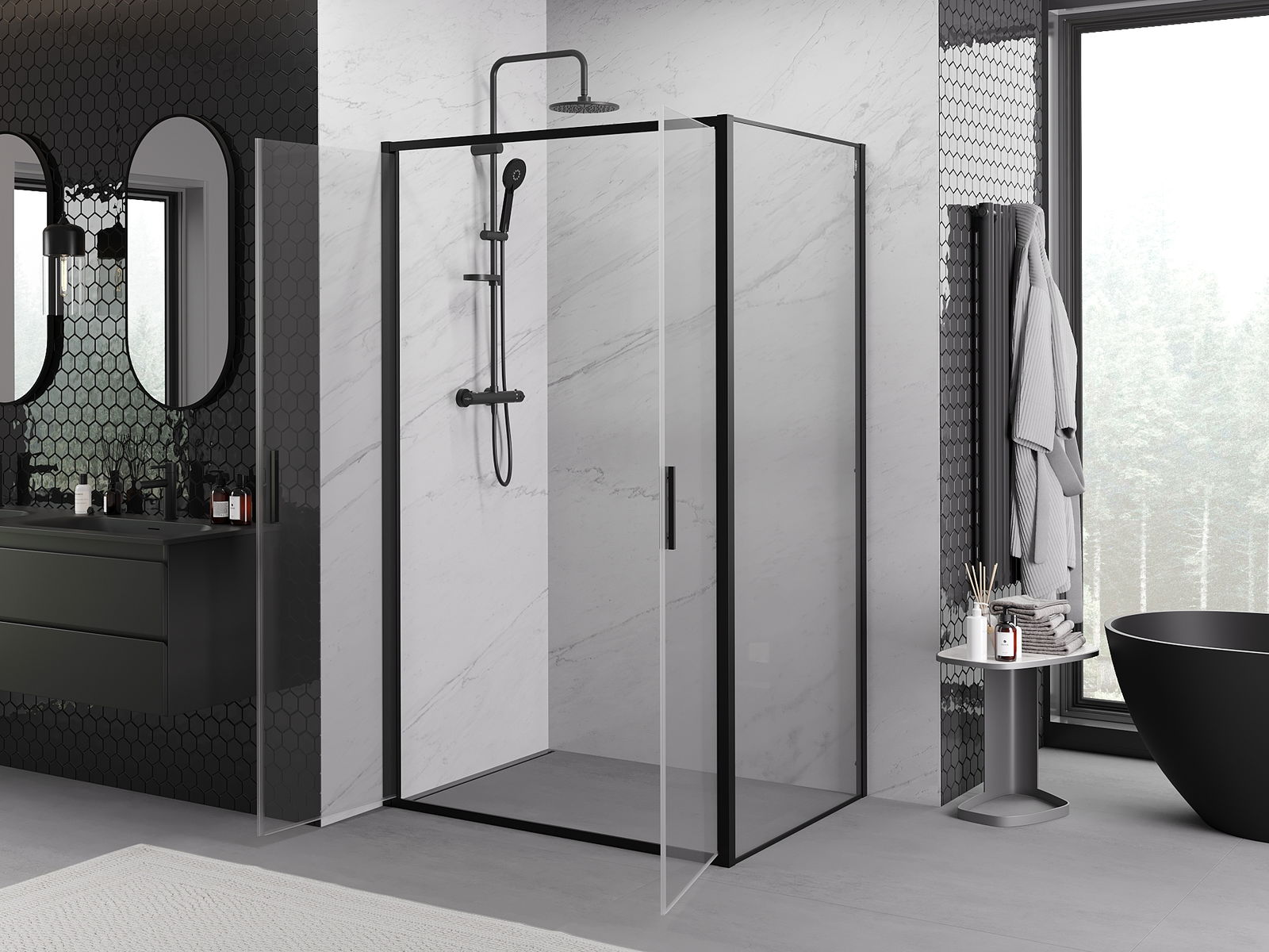 Mexen Exo душ кабина с врата 110 x 90 cм, прозрачна, черна - 814-110-090-70-00