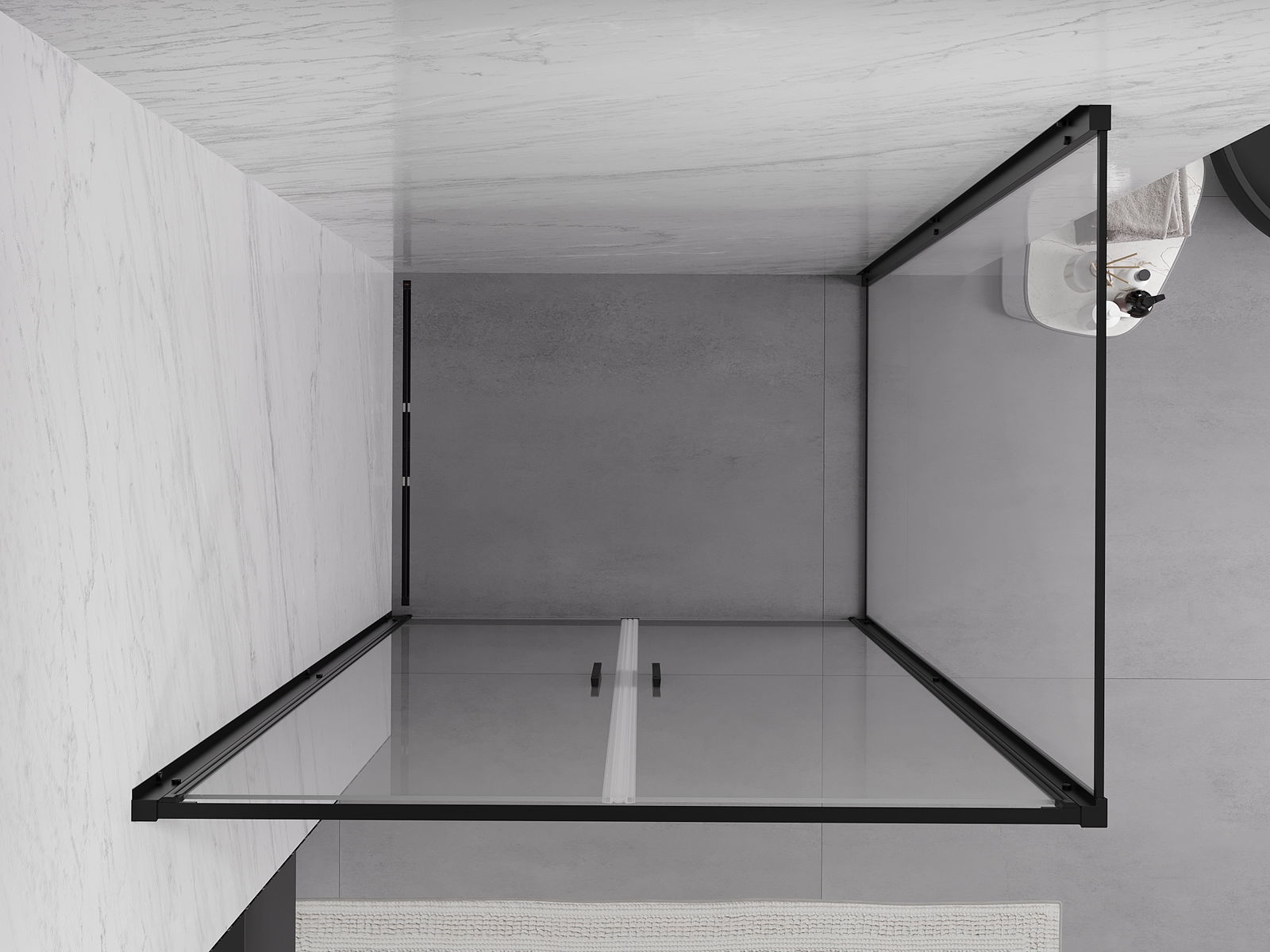 Удобната и практична дръжка е изработена от здрав и устойчив метал. Модерната форма в съчетание с покритието, съответстващо на цвета на профилите, придава на цялото модерен и стилен вид, подчертавайки естетиката на всяка баня.