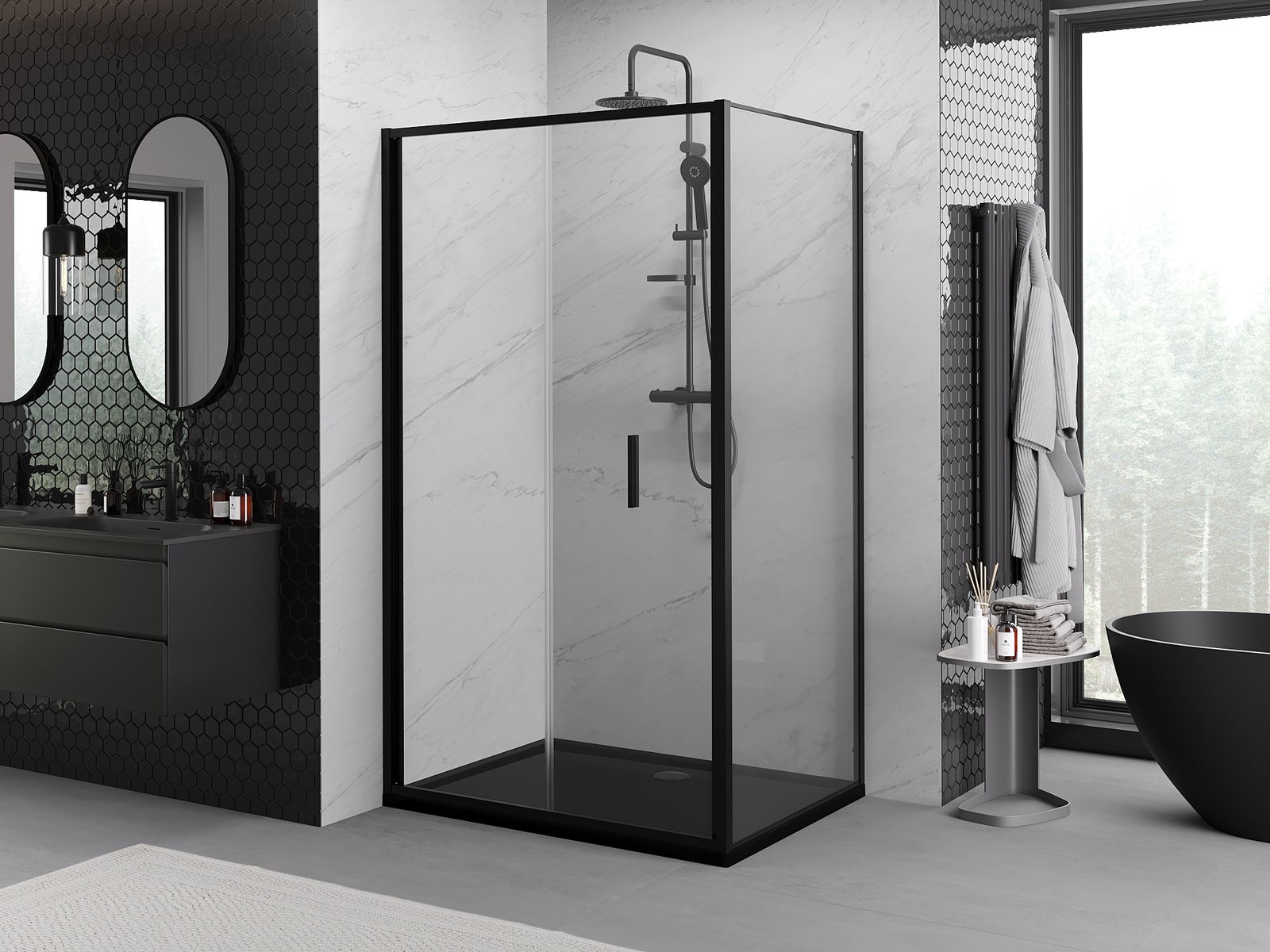 Mexen Rio квадратна душ кабина 90 x 90 см, прозрачна, черна - 860-090-090-70-00