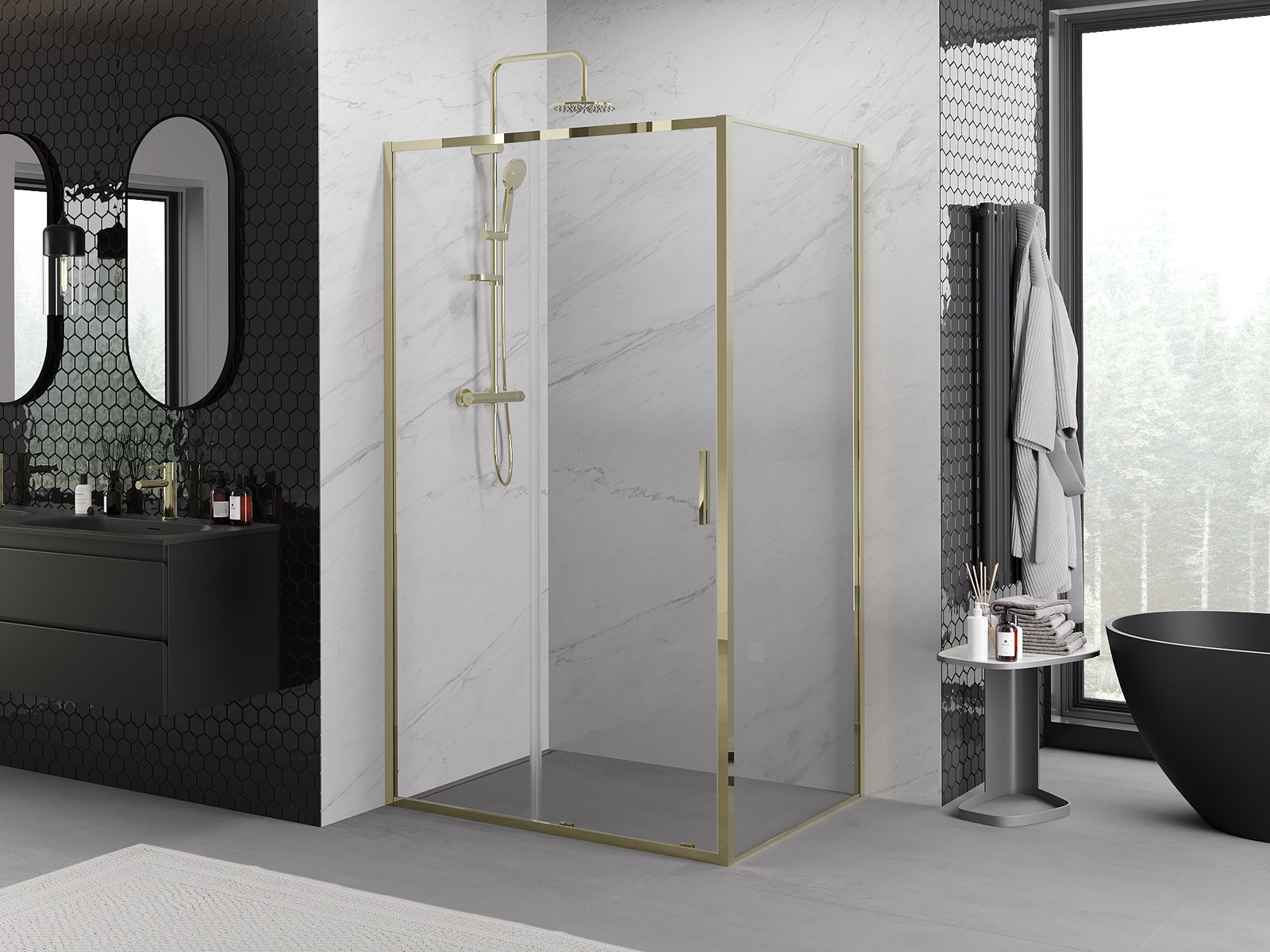 Mexen Exo плъзгаща се душ кабина 95 x 120 см, прозрачна, златна - 8151-095-120-50-00