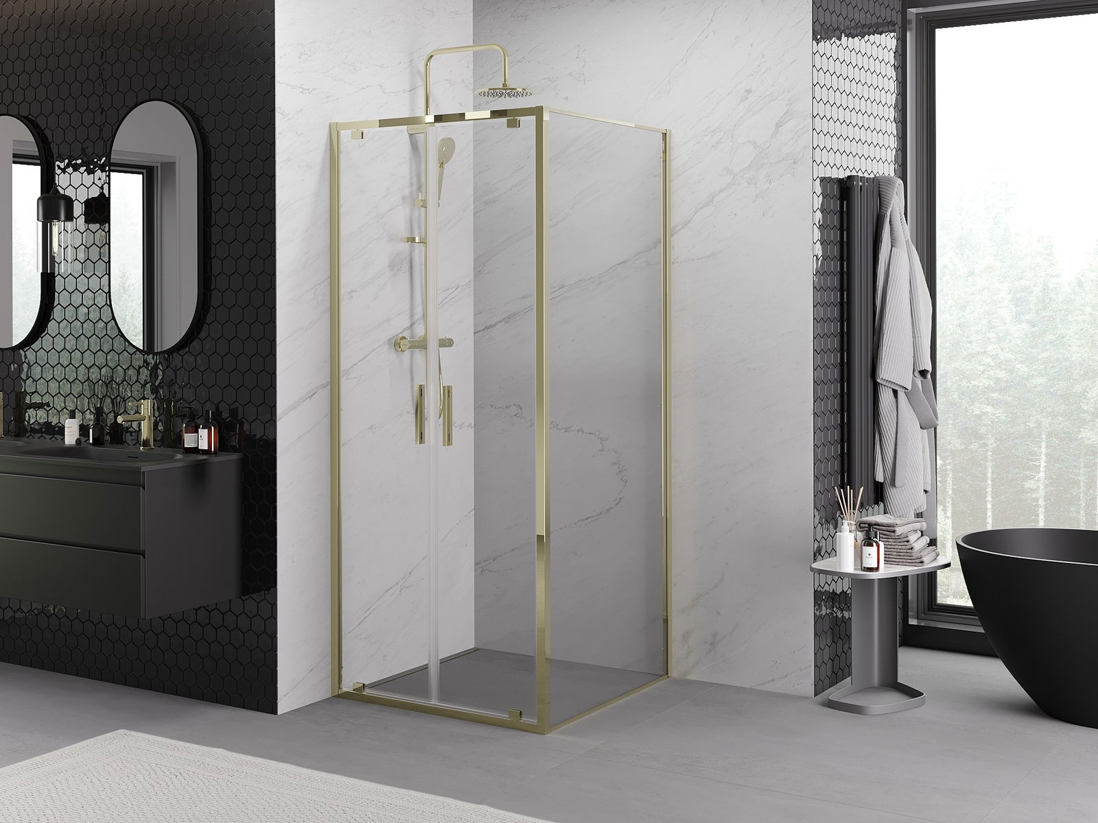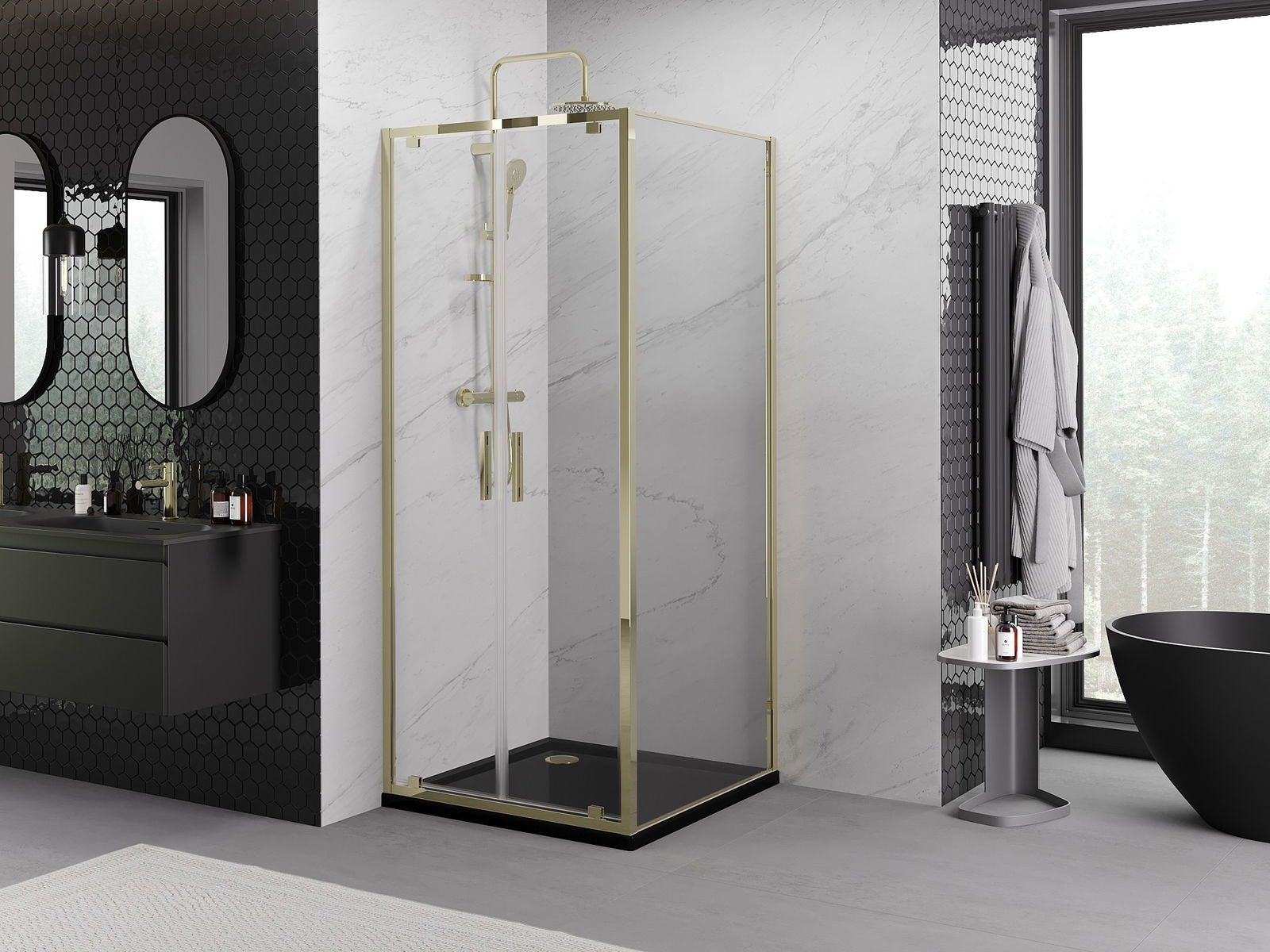 Mexen Exo отваряема душ кабина 110 x 110 см, прозрачна, златна - 8182-110-110-50-00