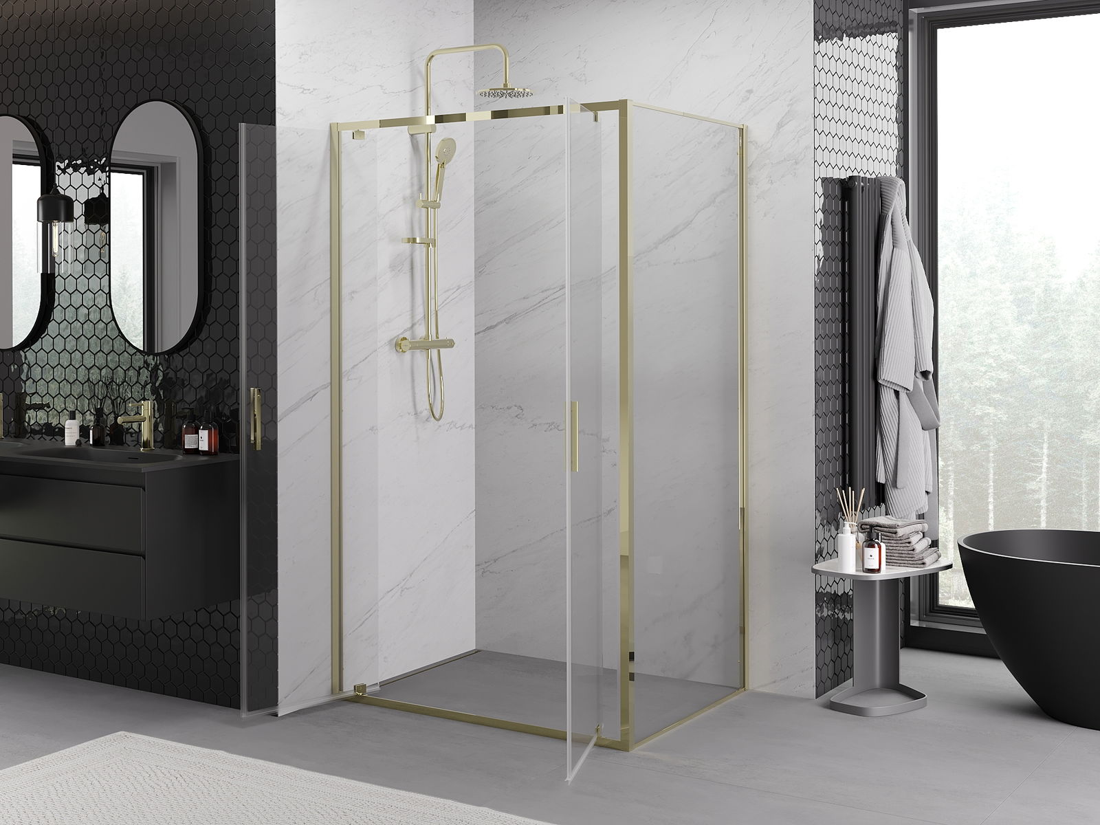 Mexen Exo отваряща се душ кабина 120 x 95 см, прозрачна, златиста - 8182-120-095-50-00