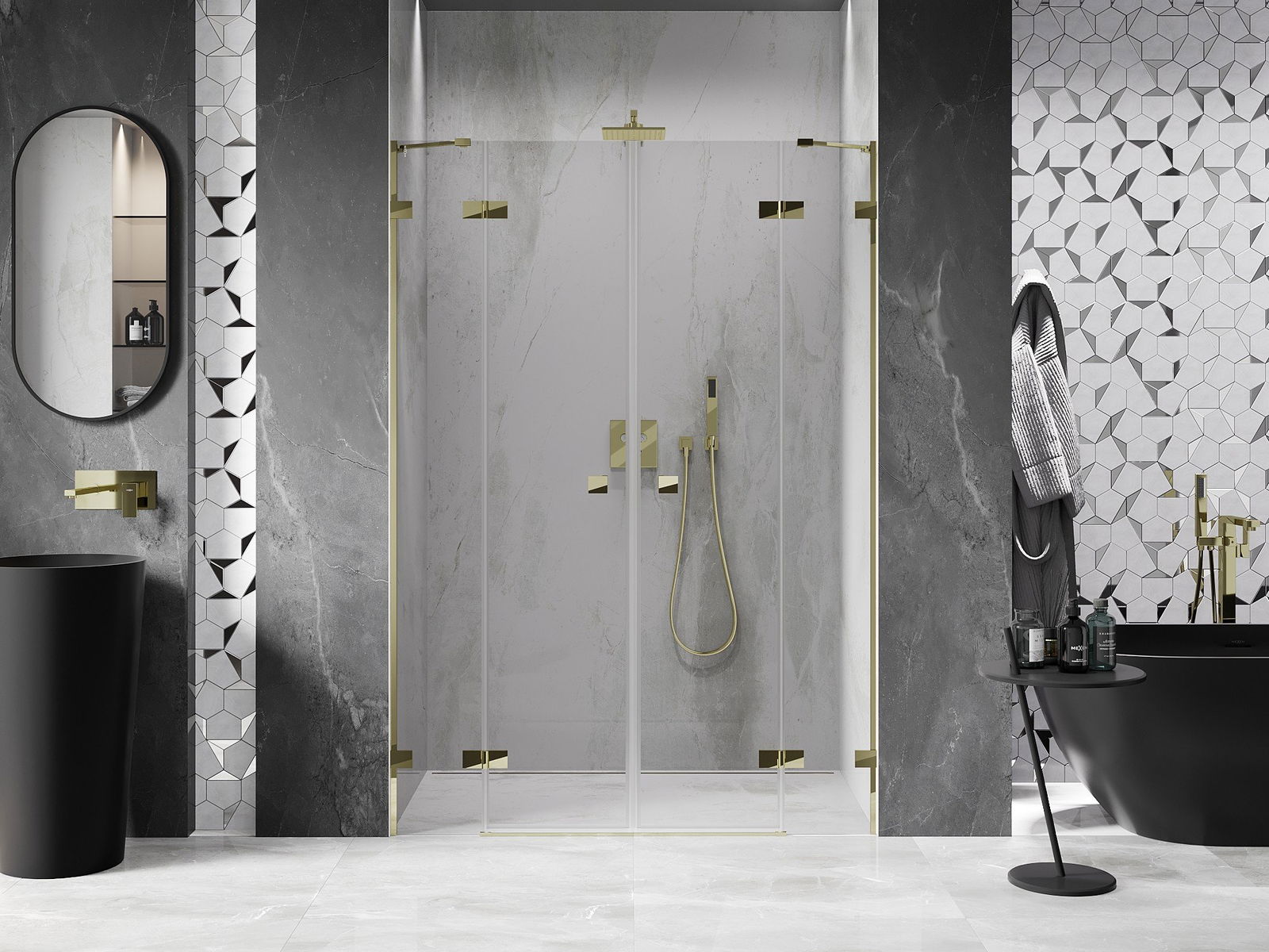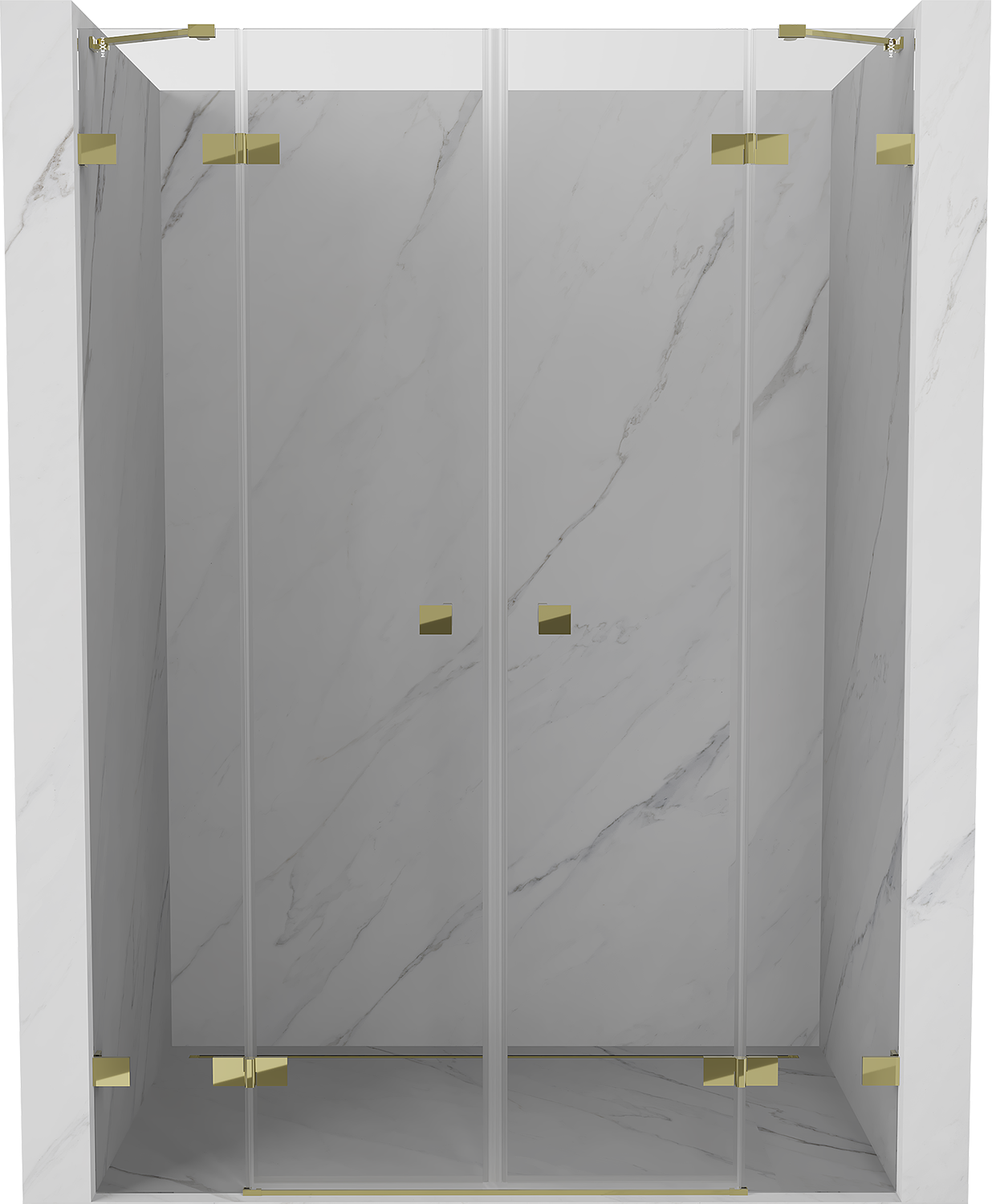 Mexen Lunar Двойни душови врати, отварящи се навън, 150 см, прозрачни, златни - 834D-150-000-50-00