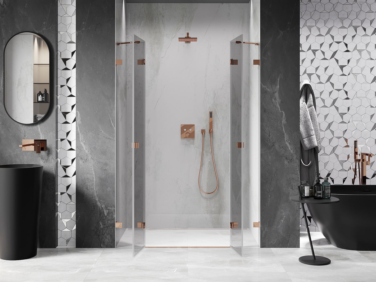 Скобите и пантите са изработени от много издръжлив месинг и създават плосък стъклен панел. Това е отличен избор, който съчетава елегантност, издръжливост и модерен дизайн. Благодарение на такива решения, душът придобива естетика и същевременно улеснява поддържането на чистота.