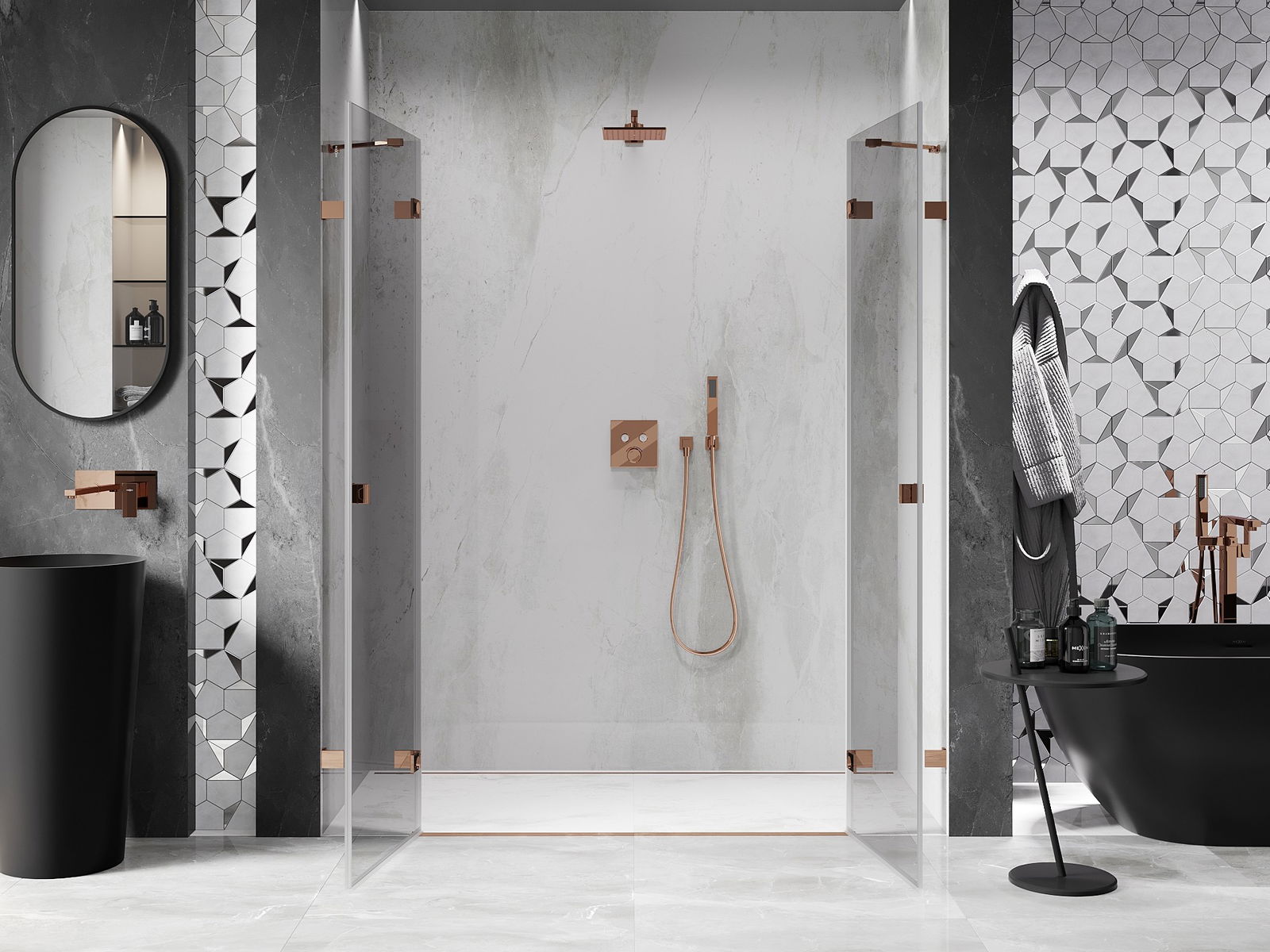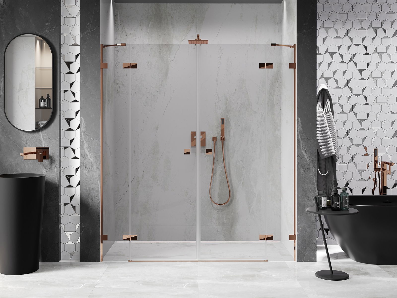 Mexen Lunar Двойка душ кабина с въртящи се врати 180 см, прозрачни, розово злато - 834D-180-000-60-00