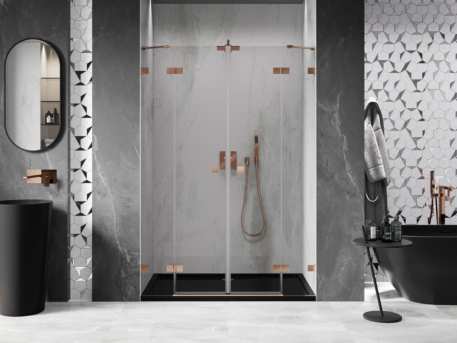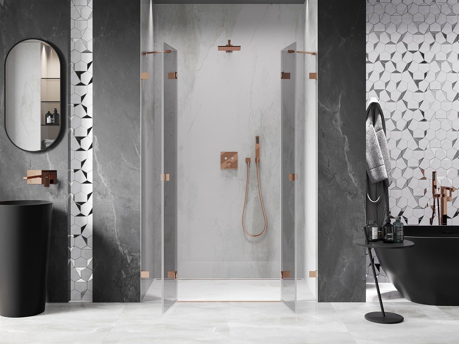 Mexen Lunar Дуо въртящи се душ врати 200 см, прозрачни, четкана мед - 834D-200-000-65-00