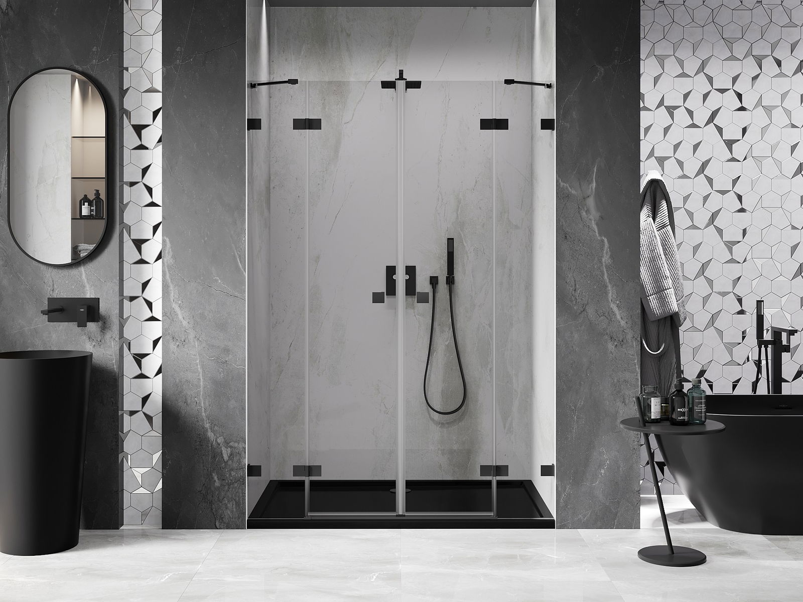 Mexen Lunar Дует отваряеми душ врати 160 см, прозрачни, черни - 834D-160-000-70-00