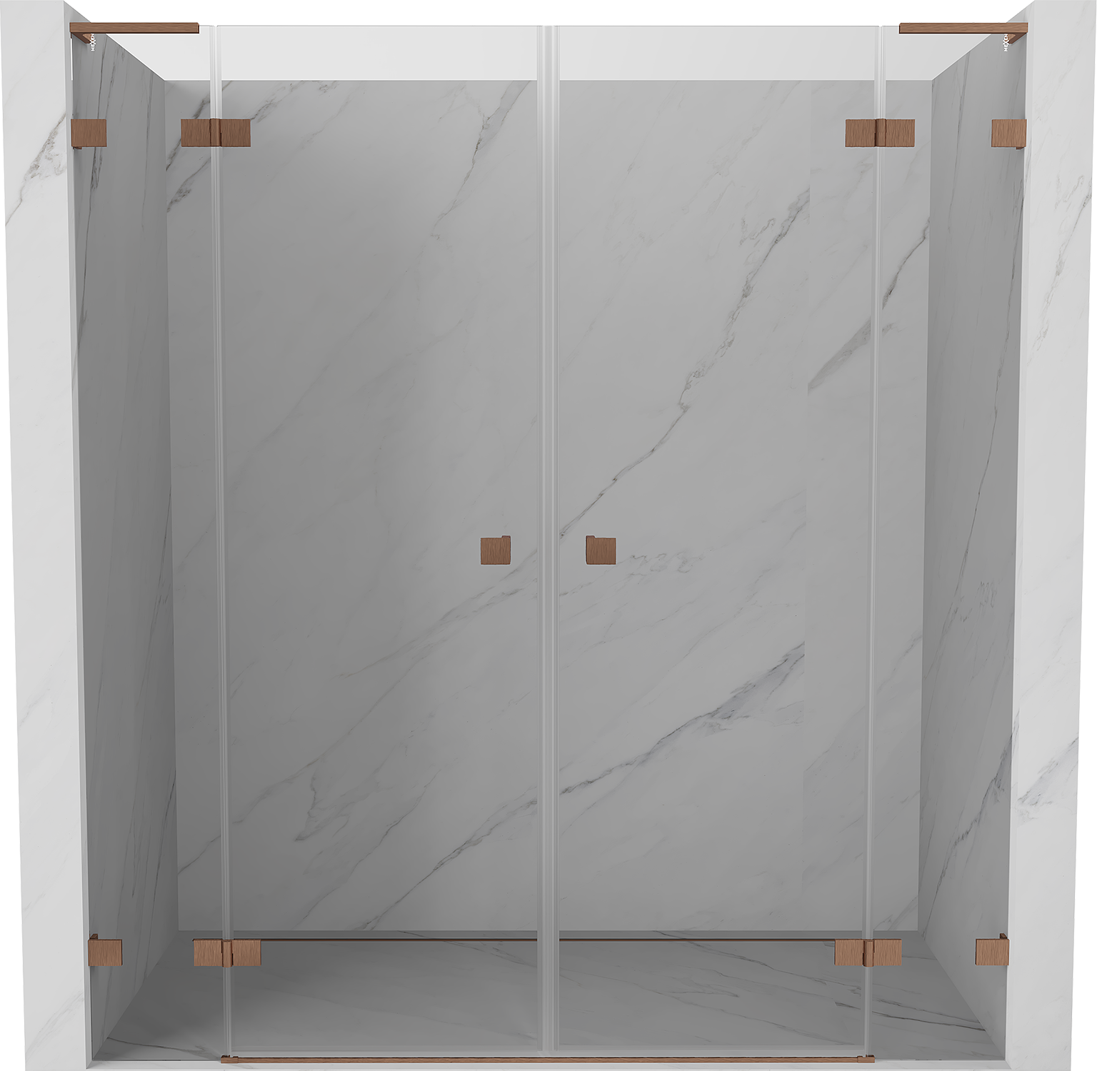Mexen Lunar L Дуо душ врати на панти 170 см, прозрачни, четкана мед - 834DL-170-000-65-00