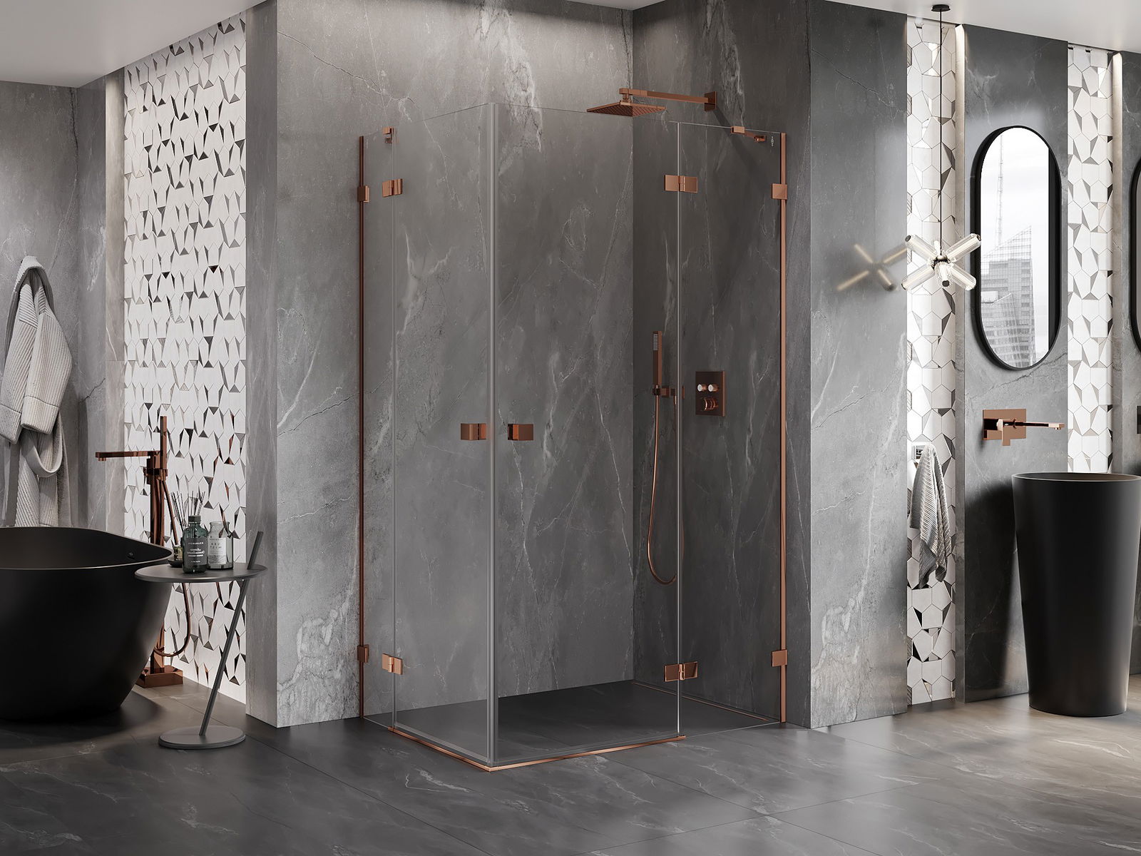 Mexen Lunar Дует кабина за душ, дясна отваряща се, 100 x 95 см, прозрачна, розово злато - 834-100P-095L-60-00