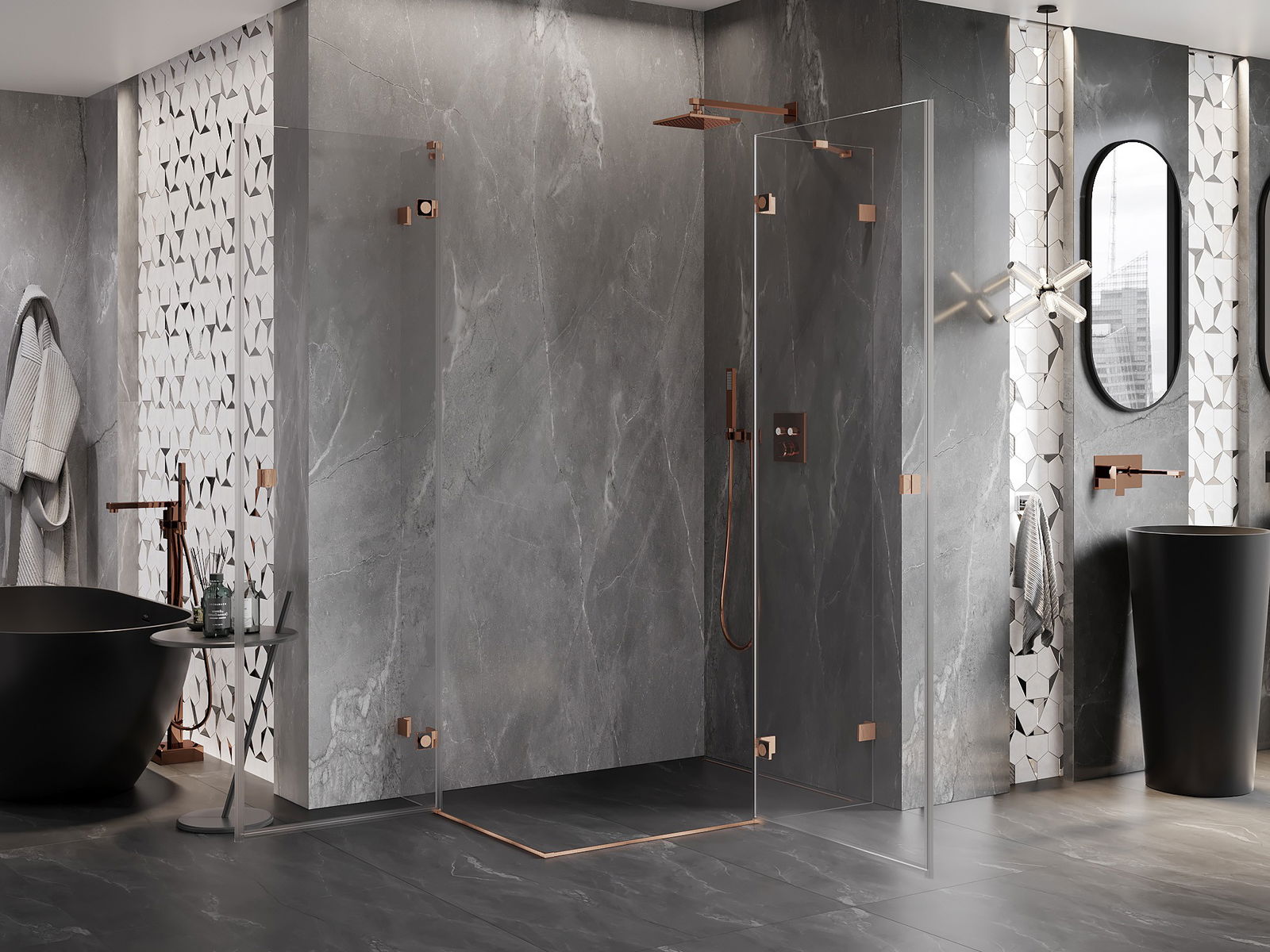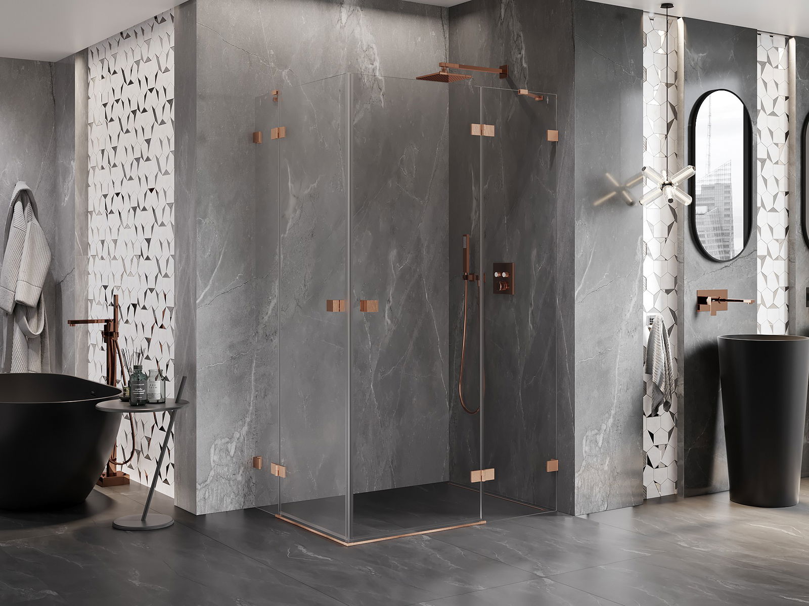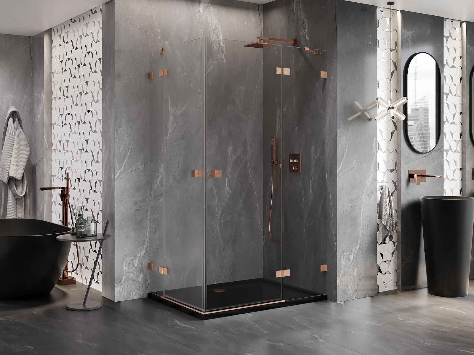 Mexen Lunar Дуо душ кабина с врата на панти, дясна 100 x 85 см, прозрачна, матиран мед - 834-100P-085L-65-00