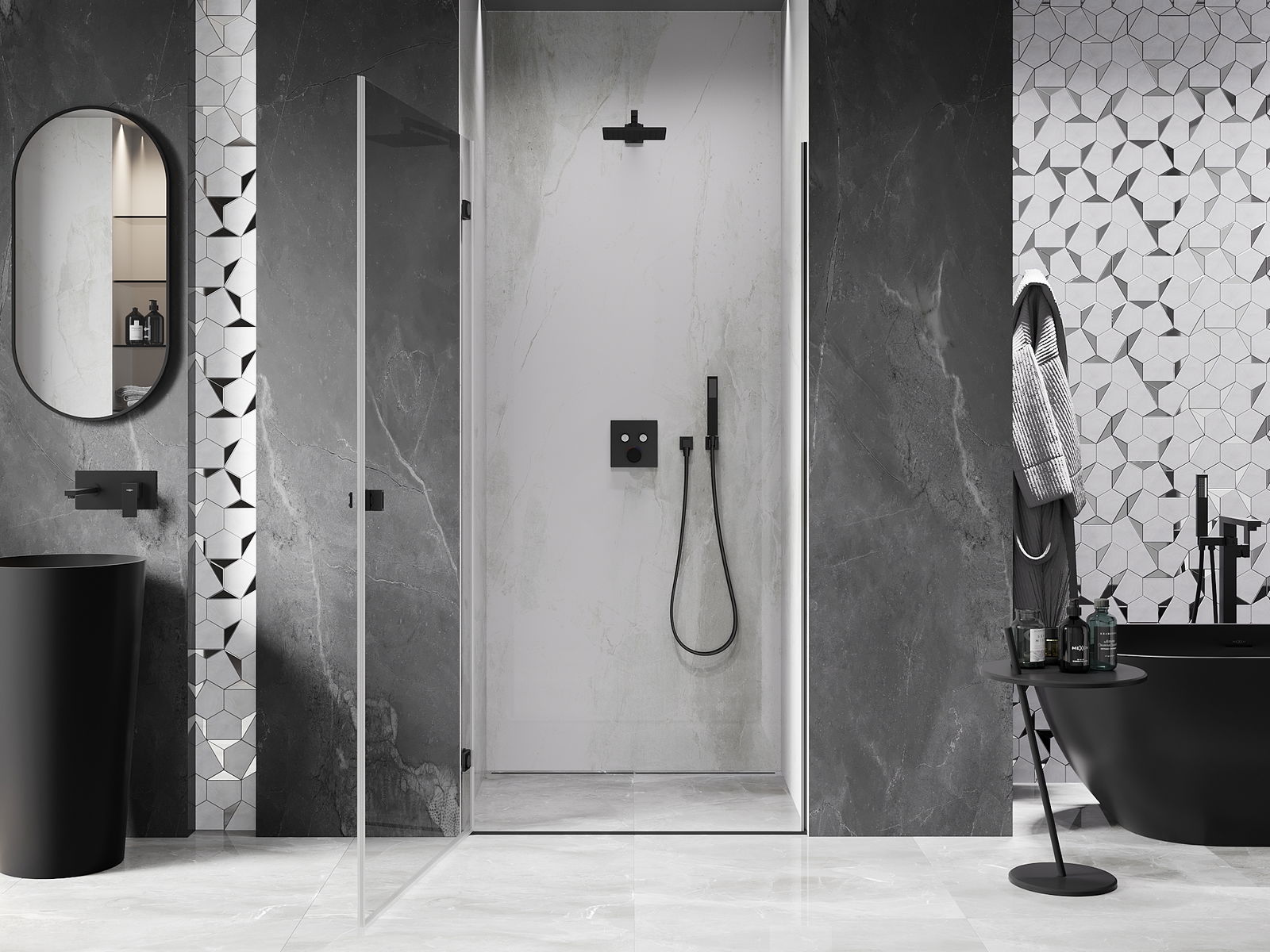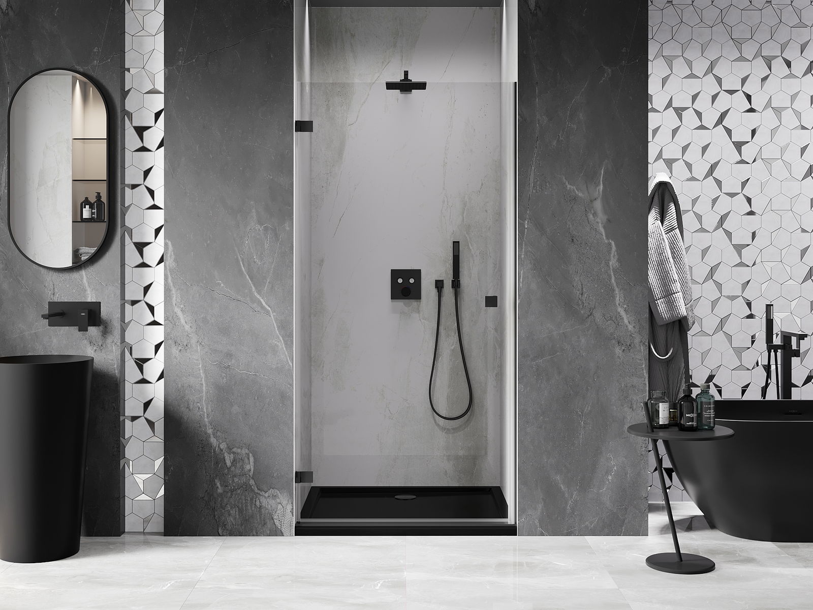 Mexen Rio квадратна душ кабина 90 x 90 см, прозрачна, черна - 860-090-090-70-00