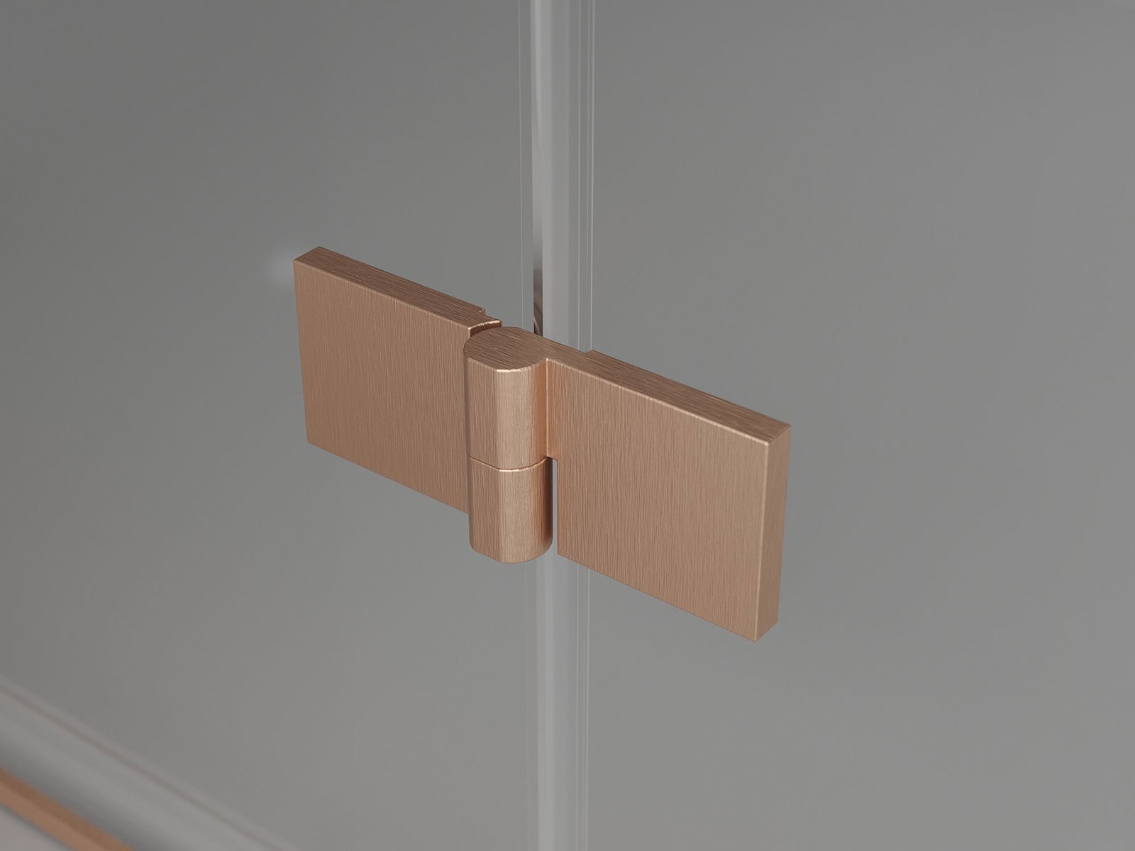 Медни дръжки и панти, вградени в стъклената повърхност