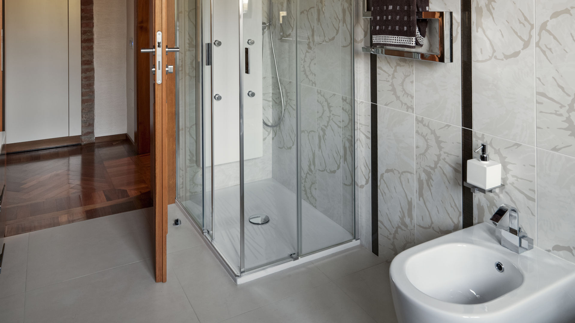 - душ кабината или ванния параван от гладко, прозрачно стъкло идеално ще се впишат в малко помещение, тъй като няма да нарушат неговите пропорции и няма да създадат отделни зони в банята