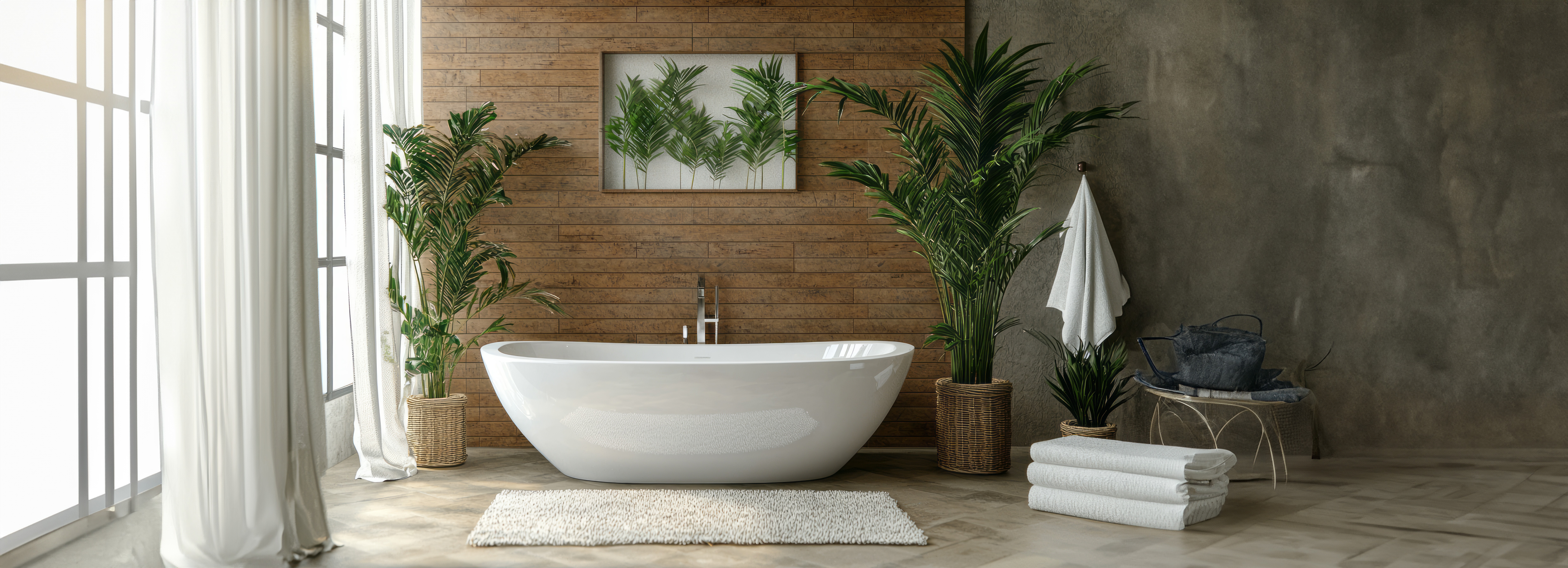 От известно време много силна тенденция в дизайна на банята са приглушените тонове, вдъхновени от природата. Трябва да се обърне внимание на цветовете от палитрата на земята, като бежови, кафяви и зелени. Неутралните цветове са важна основа за дизайна на банята. За постигане на най-добър ефект интериорът трябва да бъде обогатен с живи растения и аксесоари от естествени материали, като камък, бамбук, върба.