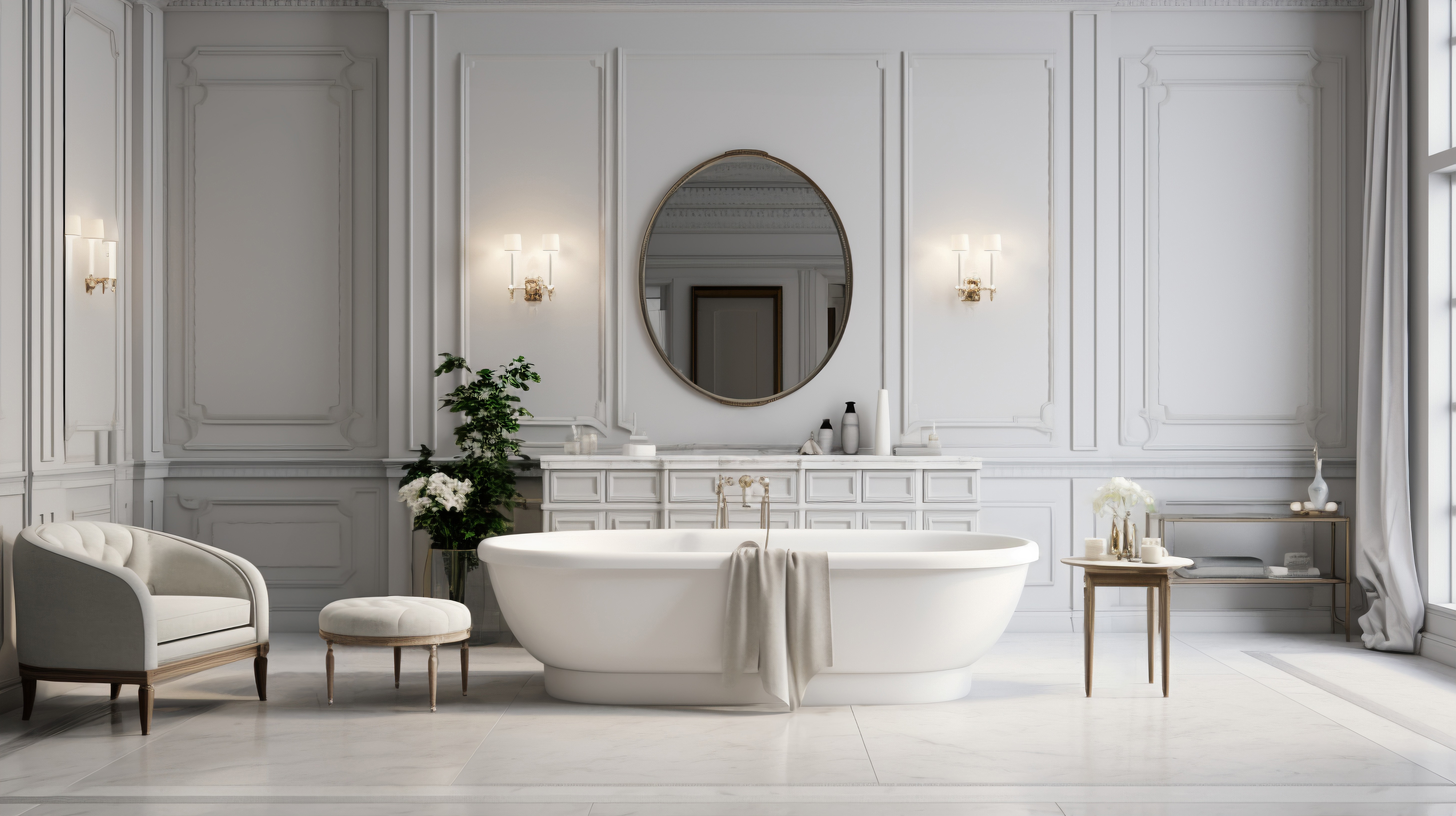 Мат или висок блясък? Балансът на текстурите в модерната подредба на баня в стил гламур